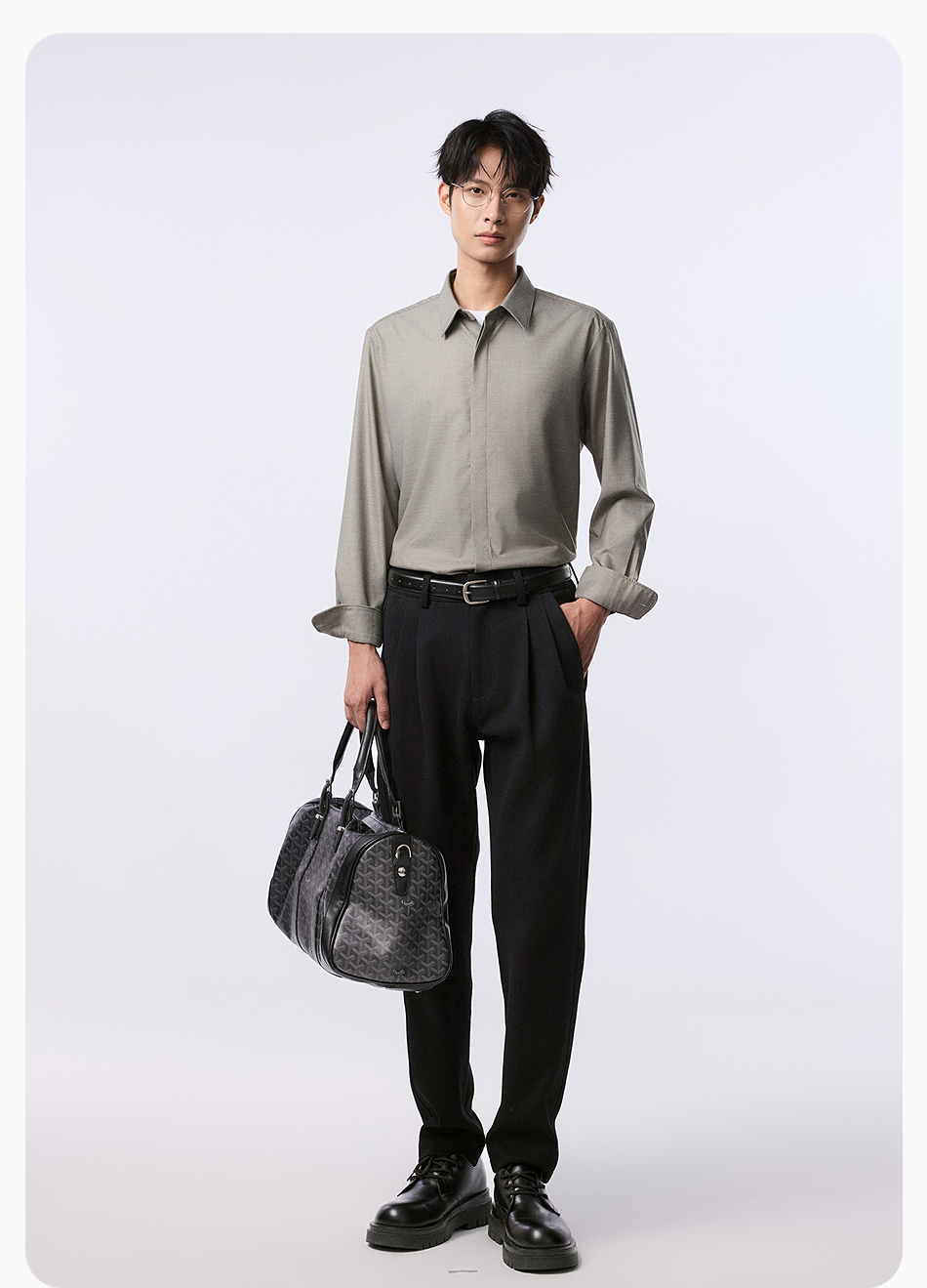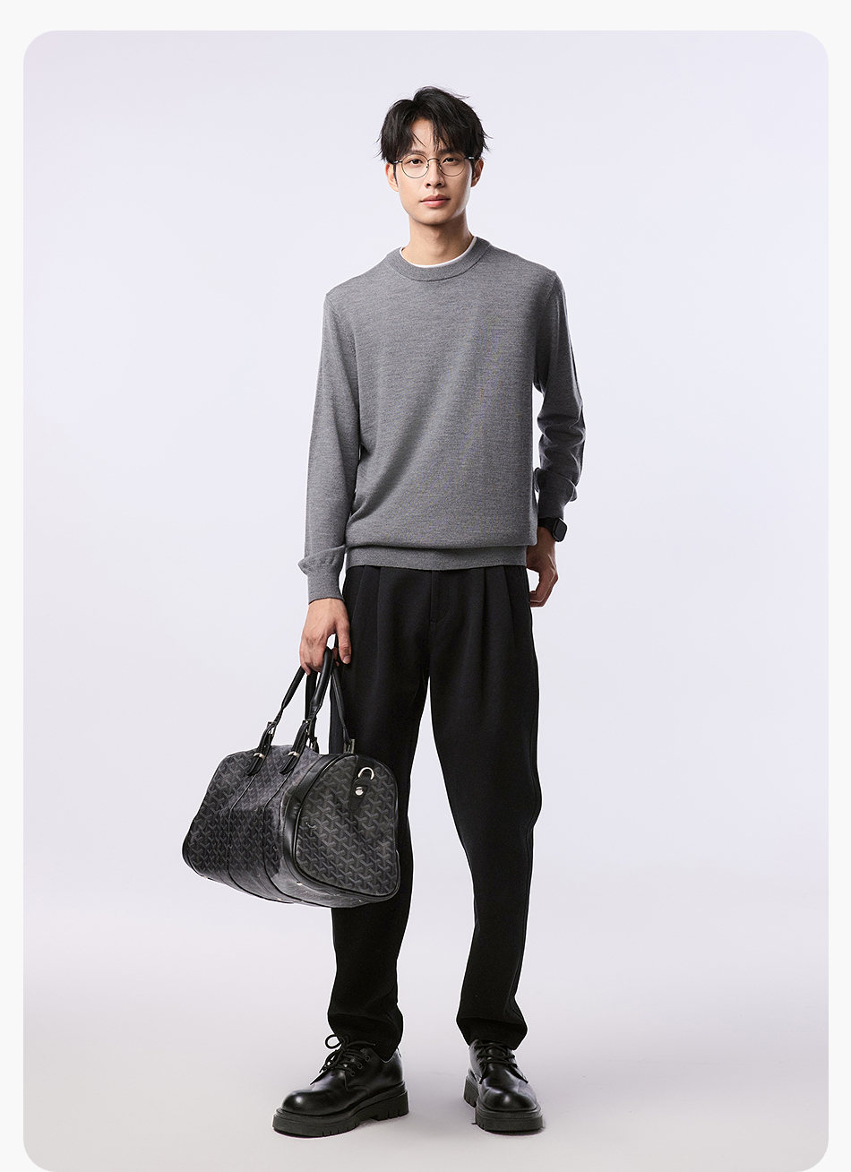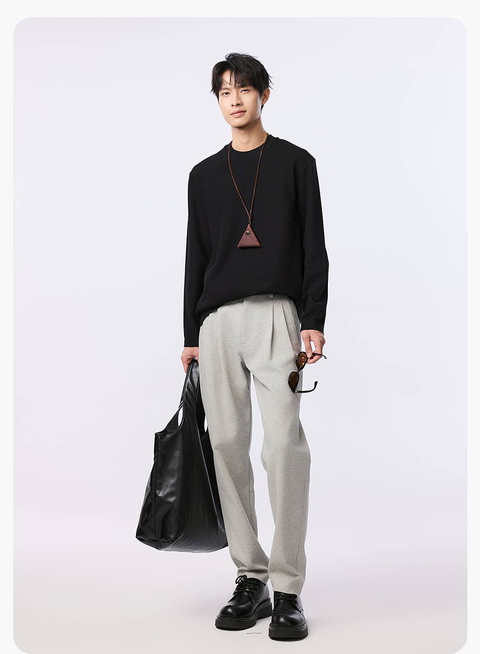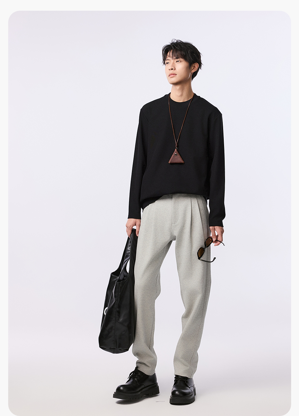 棉仓356818005-针织粗斜纹双褶川崎西裤