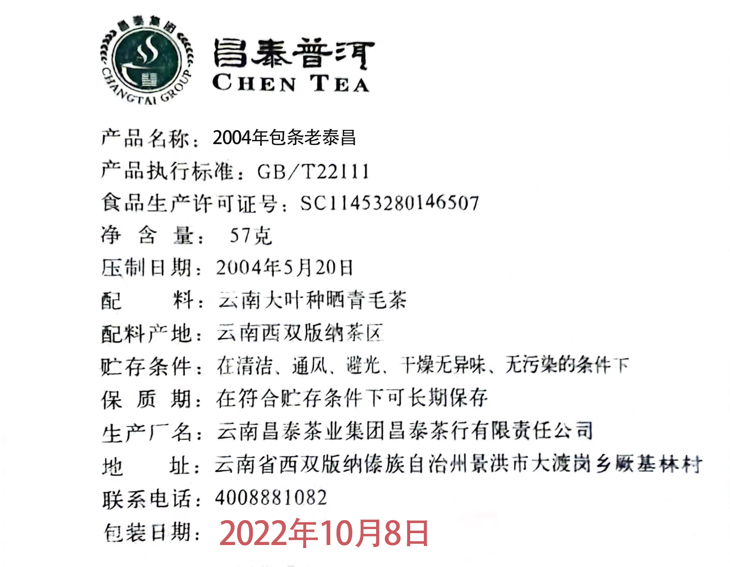 【倩倩直播间推荐】仓储19年生茶包·包条老泰昌·普洱老茶·品鉴分享装57克