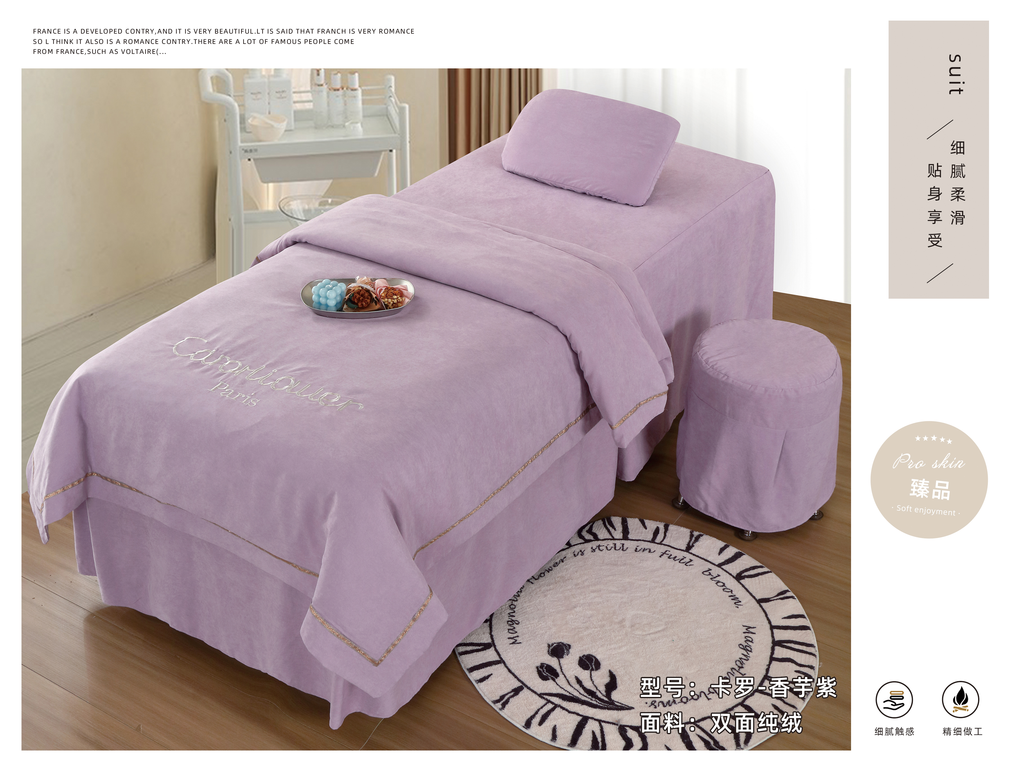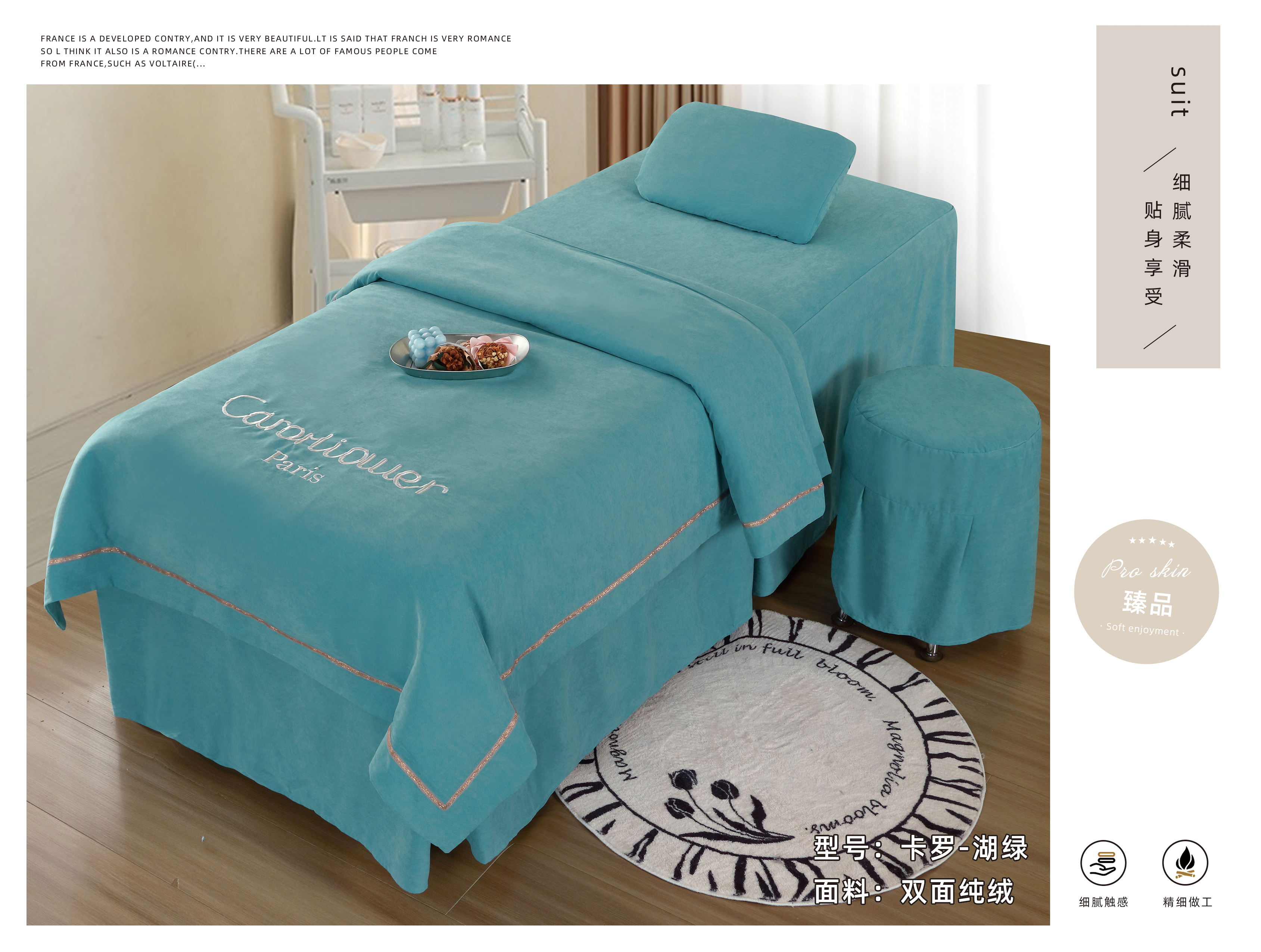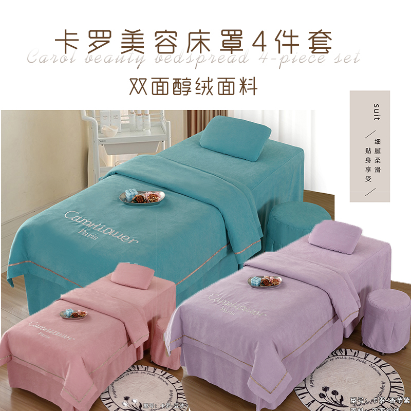 卡罗美容床罩4件套(双面醇绒面料) 暖橘色/灰色/蓝色/绿色 美容床罩4件套 190*77/套