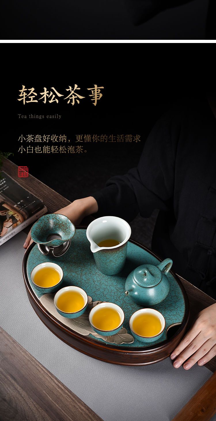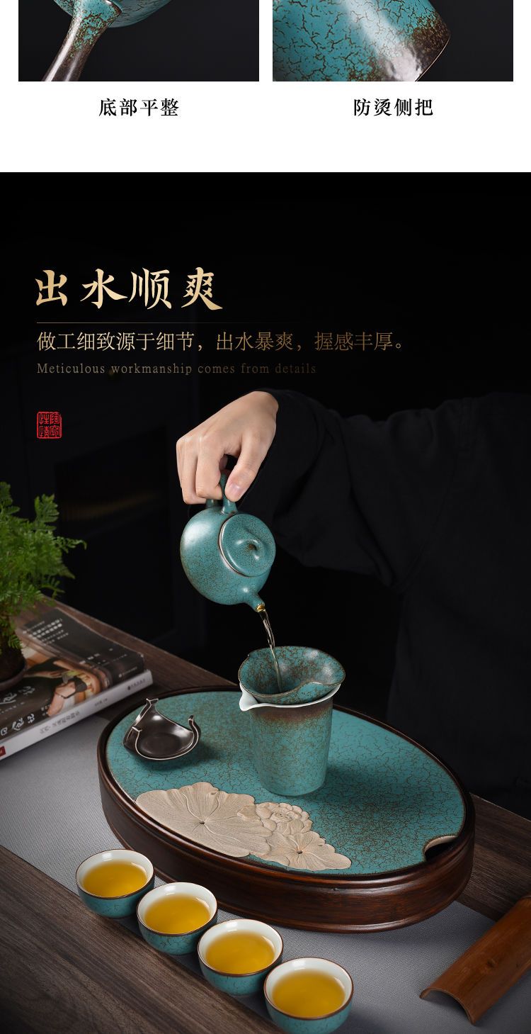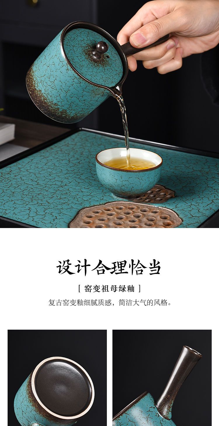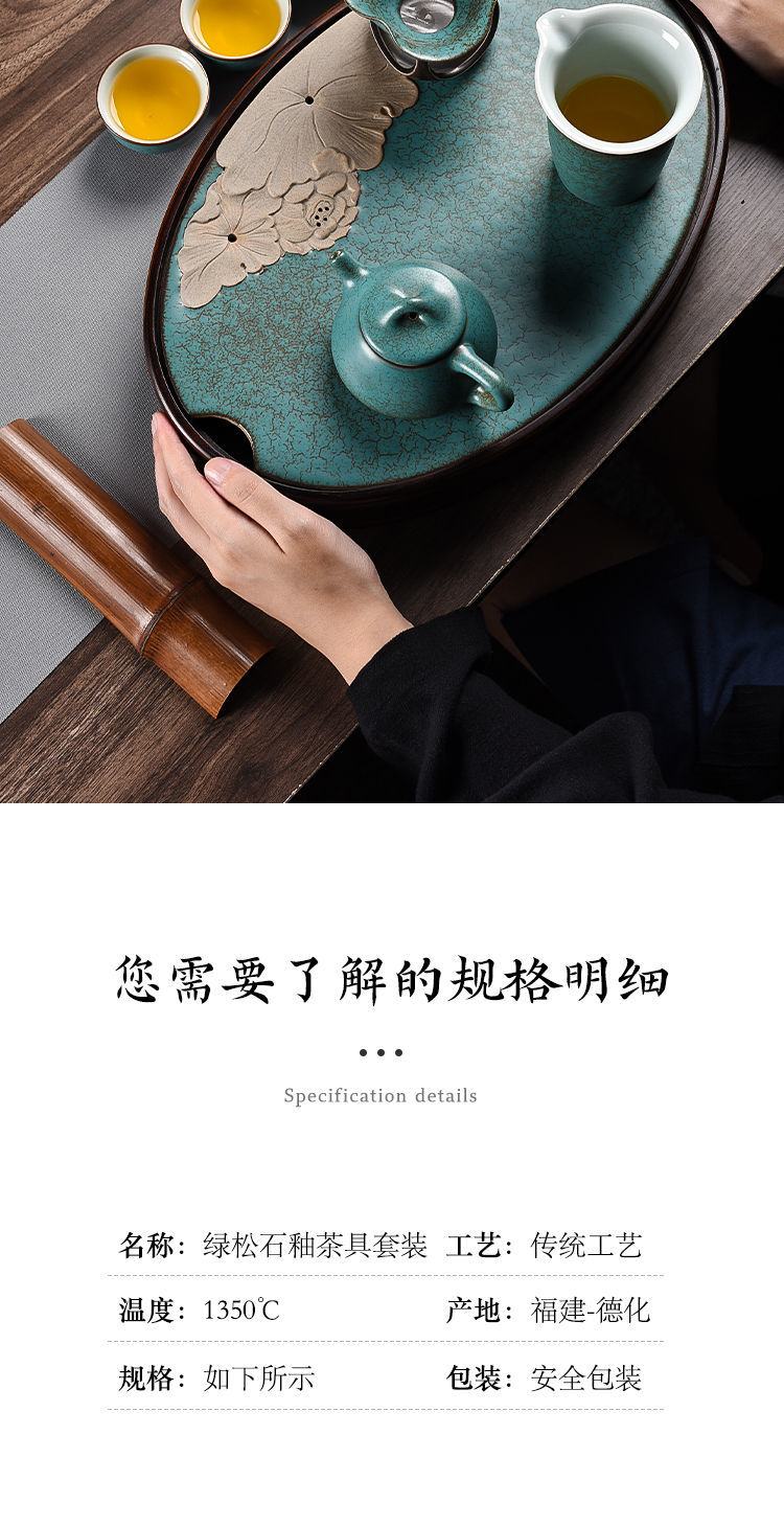沉上茶具套装绿松石釉老式中式复古家用整套茶壶茶杯组带茶盘