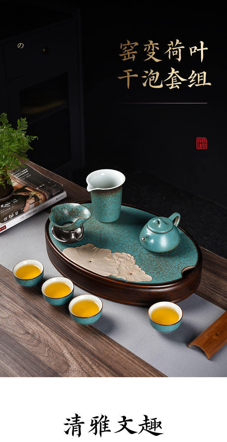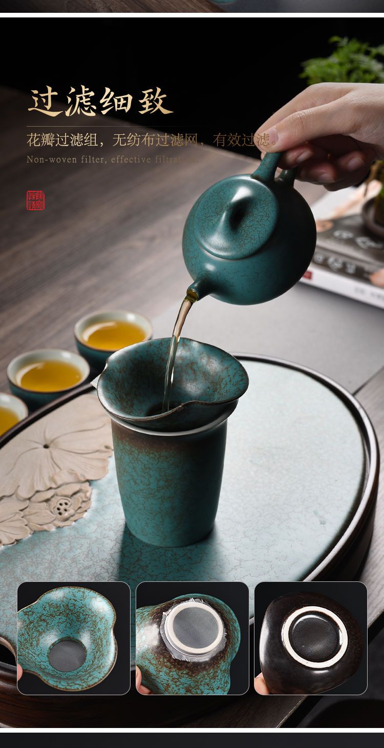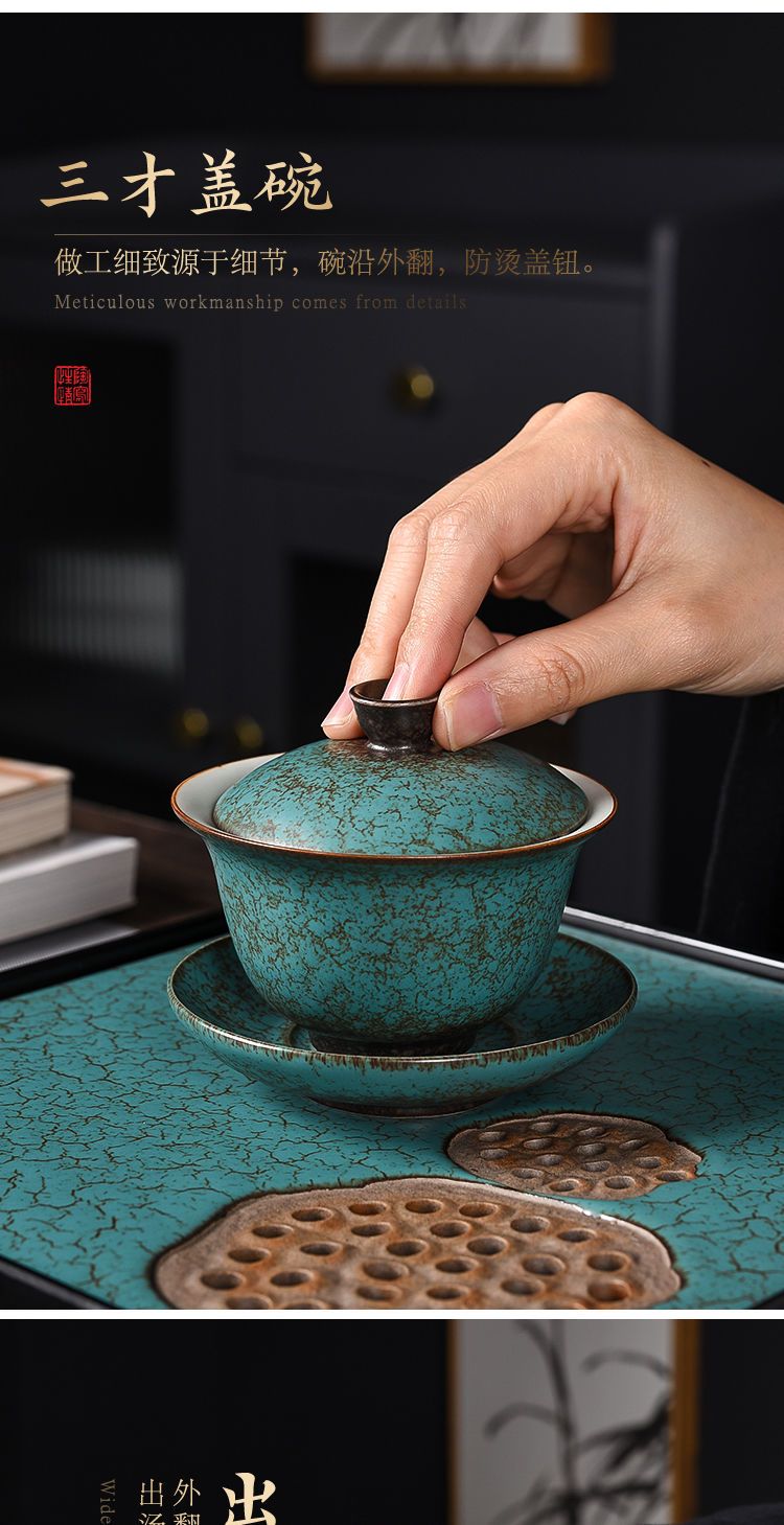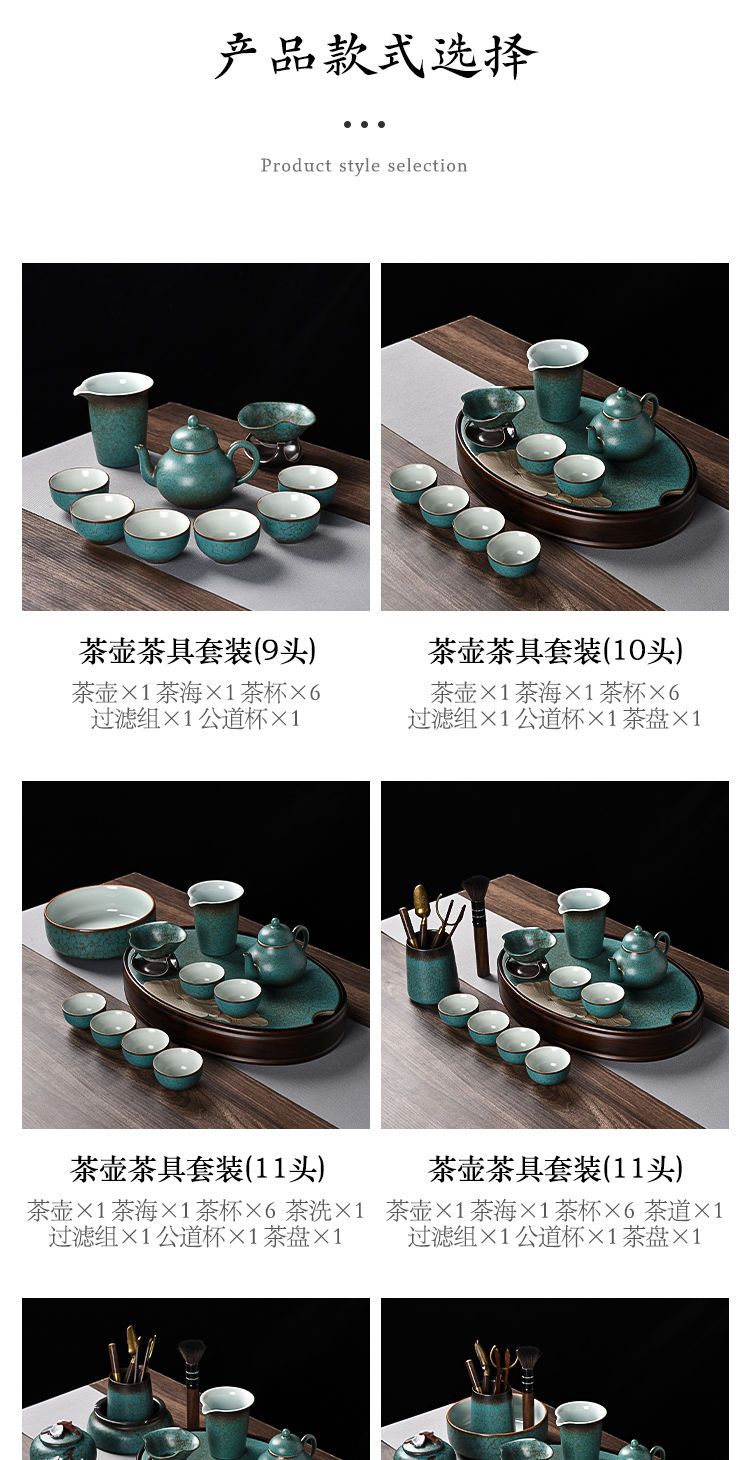 沉上茶具套装绿松石釉老式中式复古家用整套茶壶茶杯组带茶盘