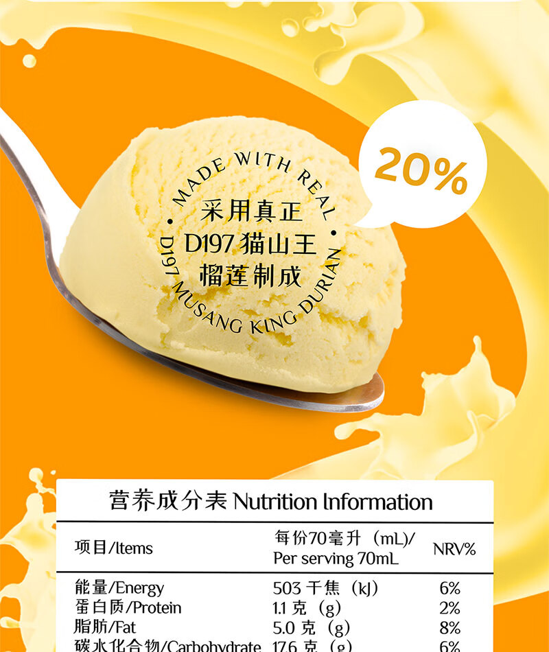【BF】猫山王榴莲冰激凌(70ml/盒)