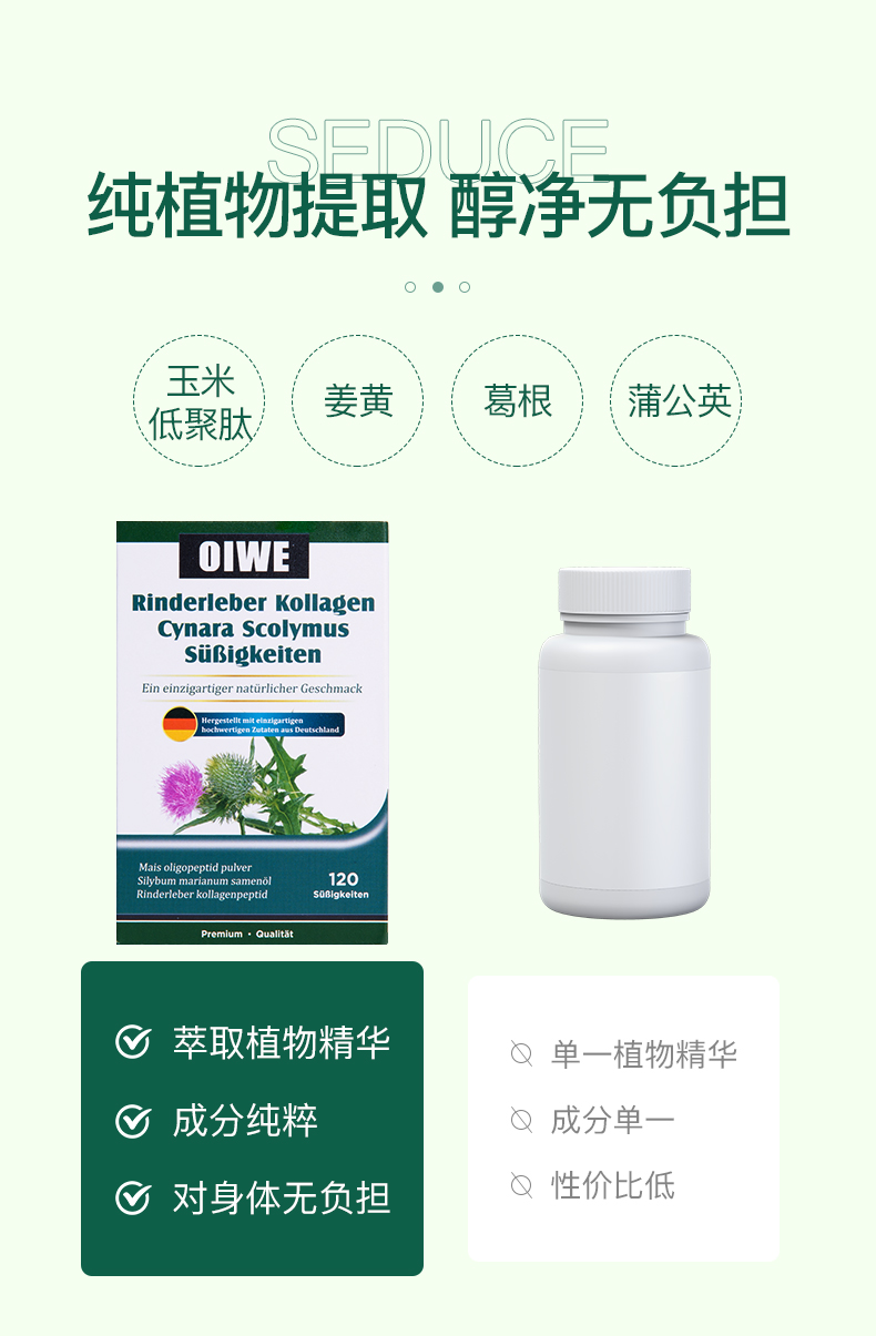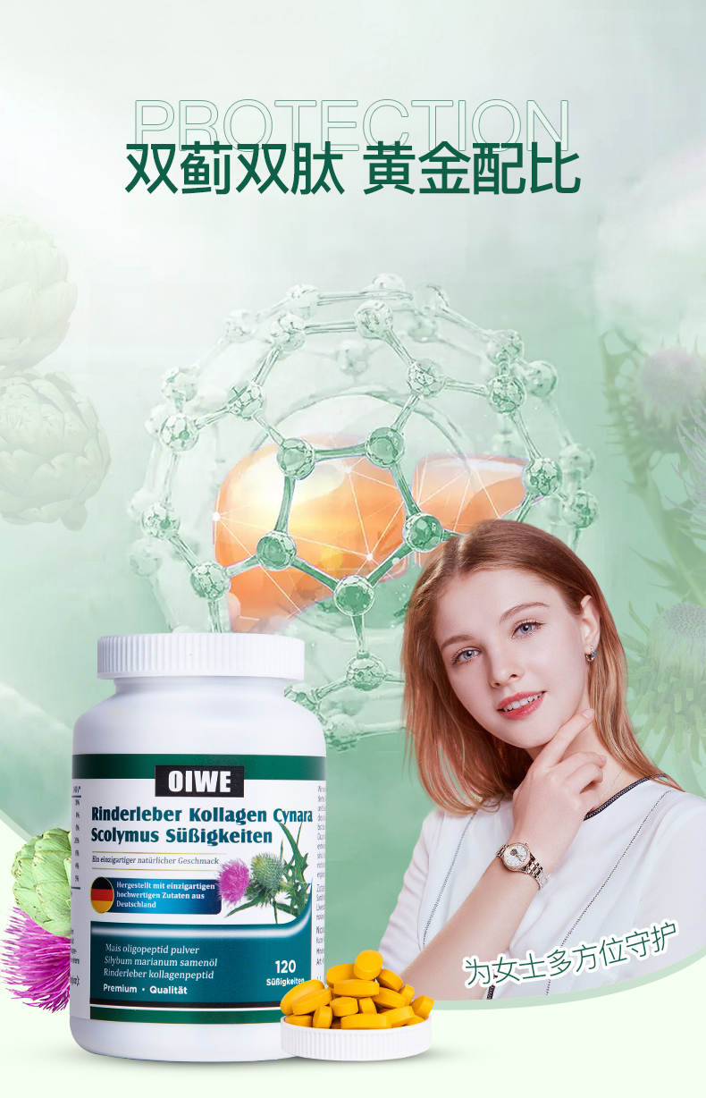 OIWE牛肝胶原蛋白双蓟片 适合熬夜保养 聚餐喝酒前口服推荐