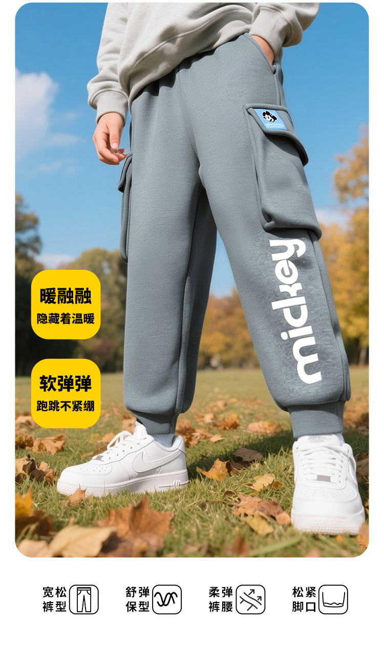 贝贝怡童装儿童保暖束脚运动裤男童长裤冬季冬装加厚加绒休闲裤子234K2558