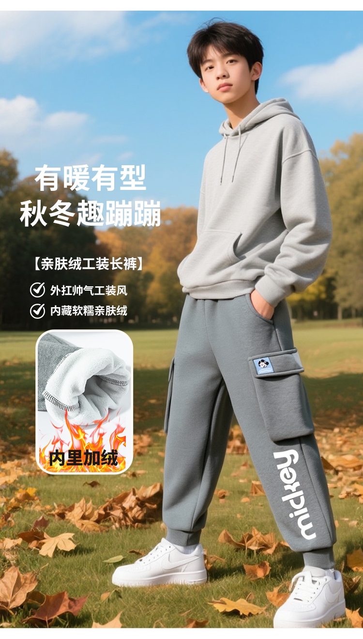 贝贝怡24秋季新款男童工装裤中大童户外休闲学生束脚裤ZB3DK031