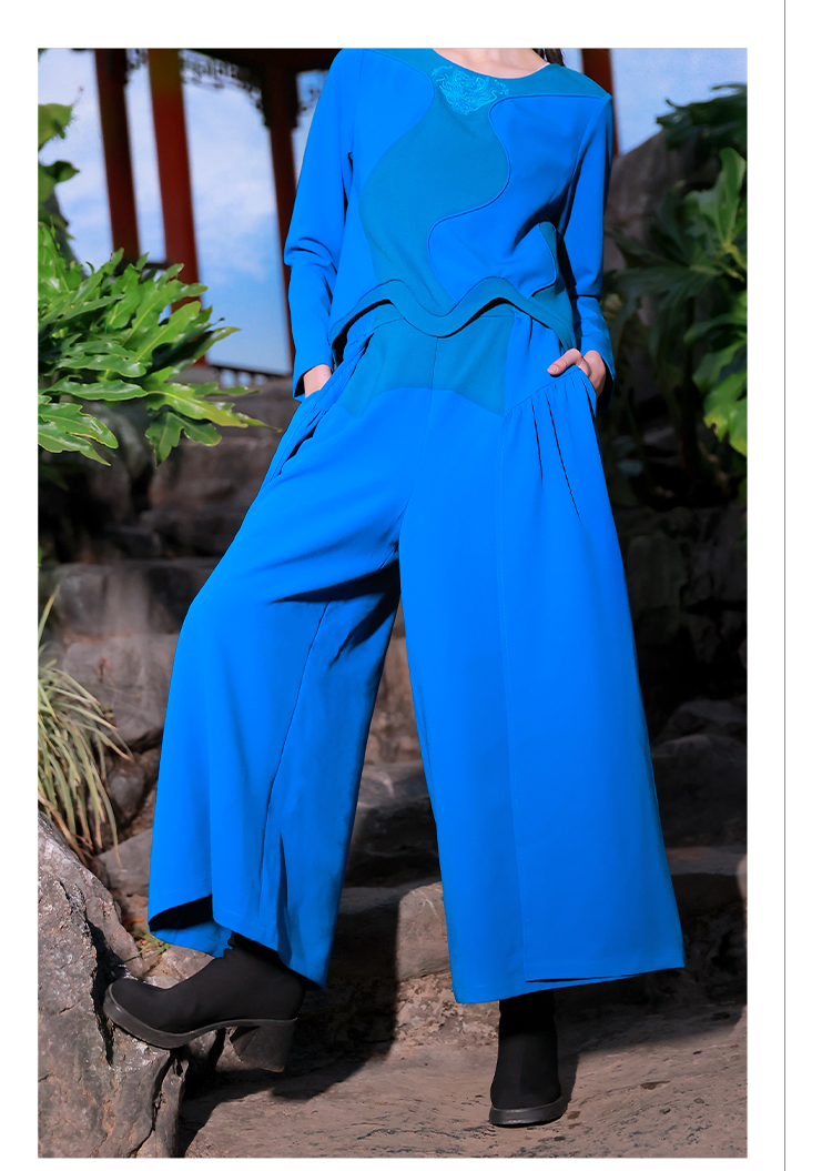 龙跃云津绣花上衣+独步前川阔腿裤 |现货加急发