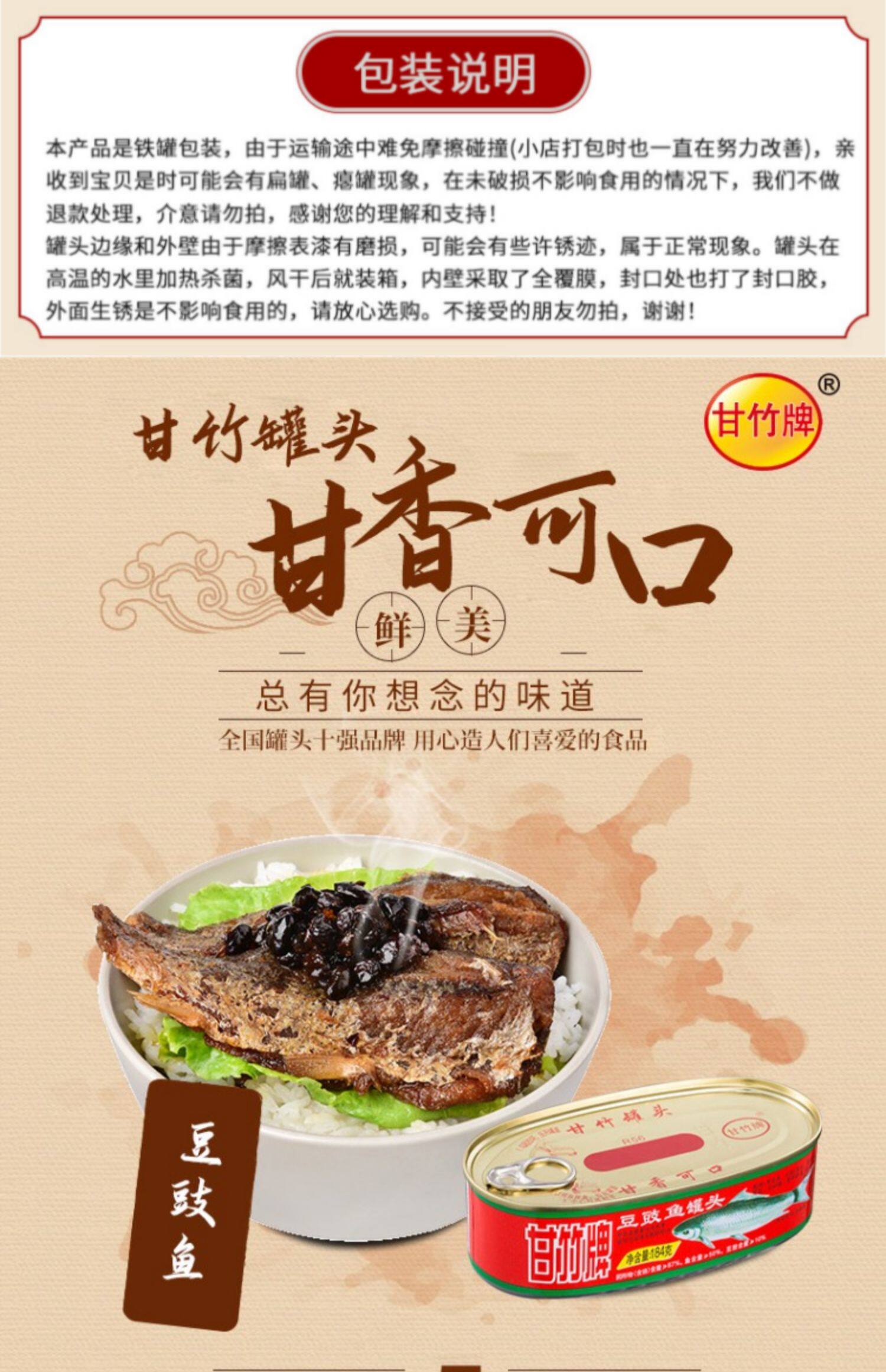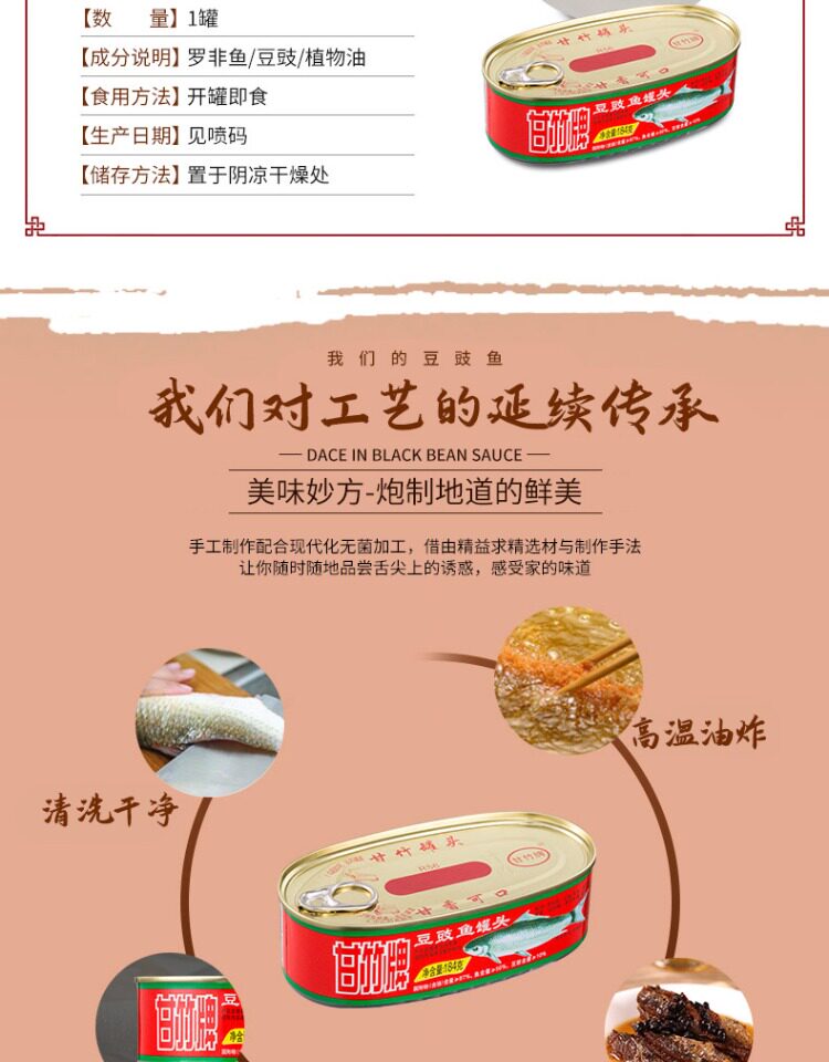 甘竹牌豆豉海鱼罐头184g/罐广东特产即食鱼类罐头下饭菜