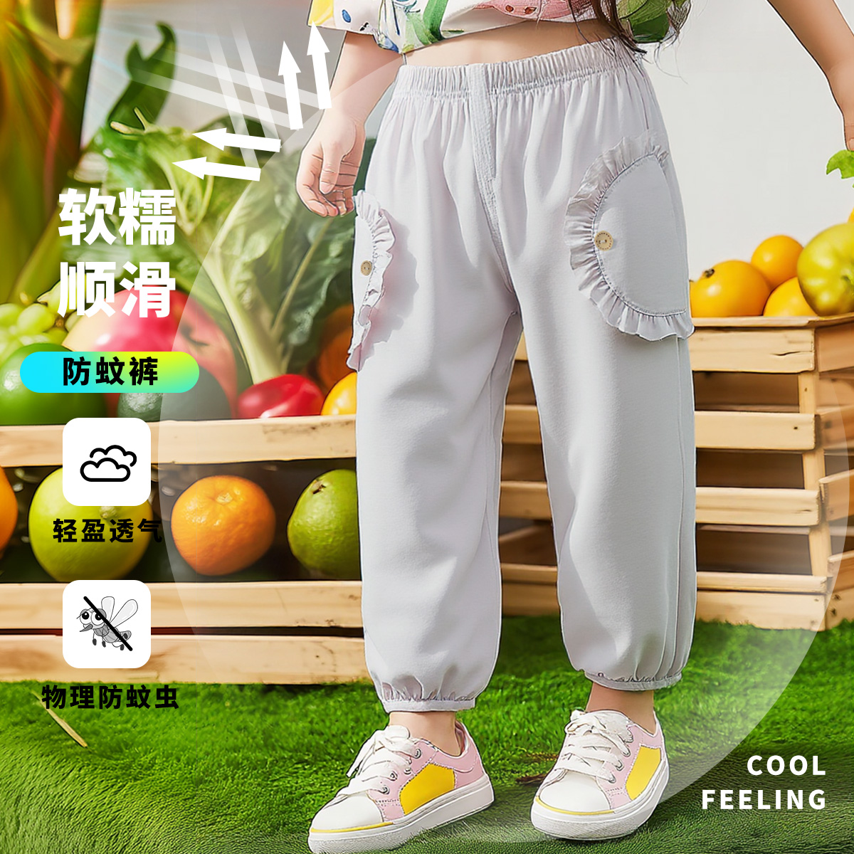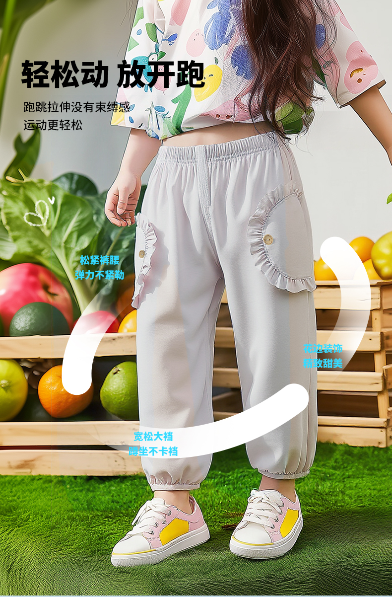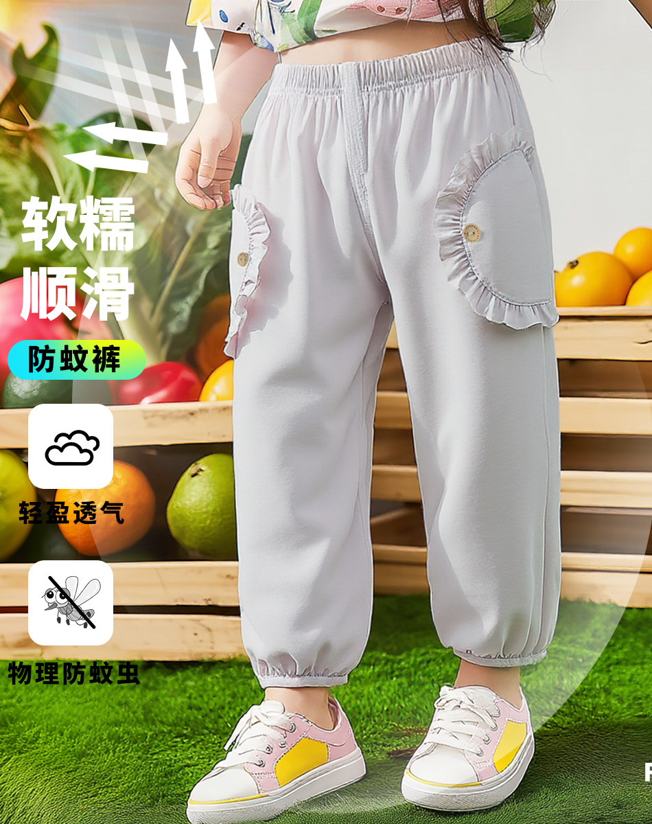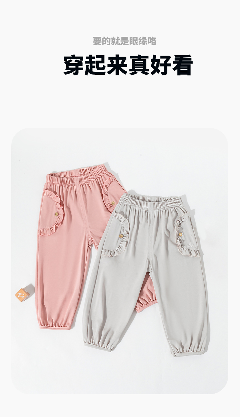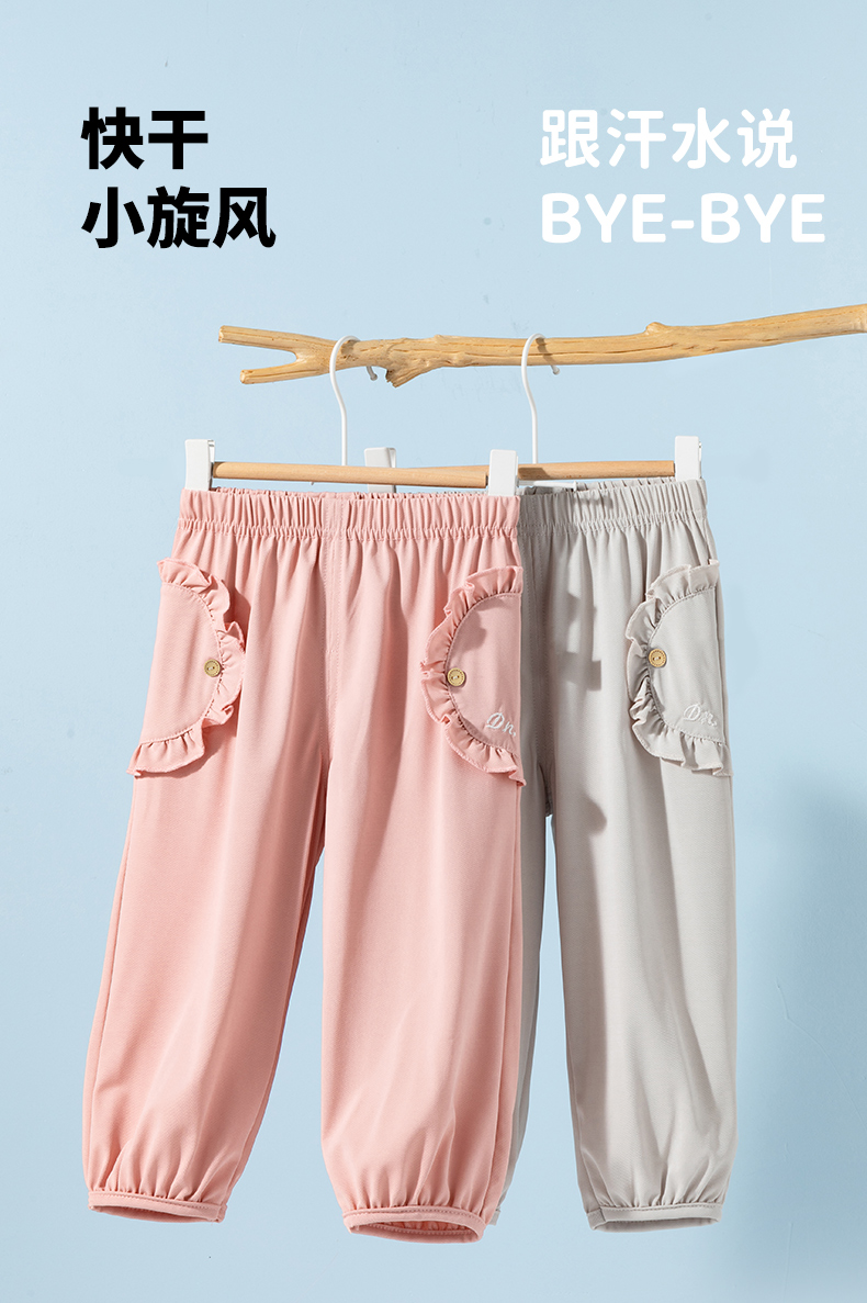 ZB2EK018贝贝怡2025春夏新款女童时尚百搭长裤宽松透气休闲裤凉感速干防蚊裤