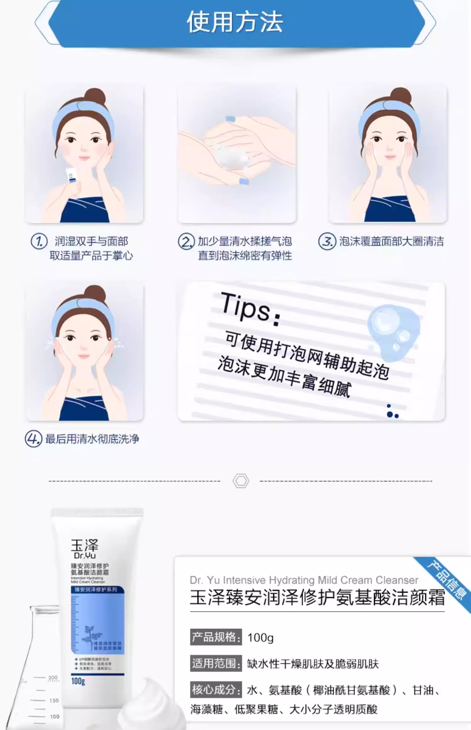 玉泽臻安润泽修护氨基酸洁颜霜100g
