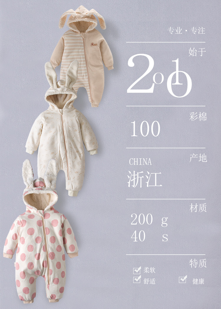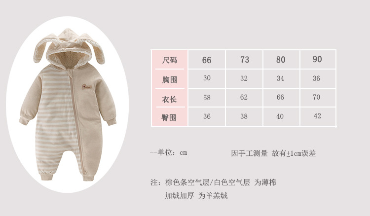 【优质面料 加绒加厚 健康保暖】童装新款彩棉婴儿夹棉加绒连体衣保暖哈衣宝宝服装爬服