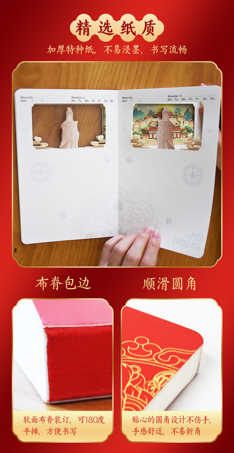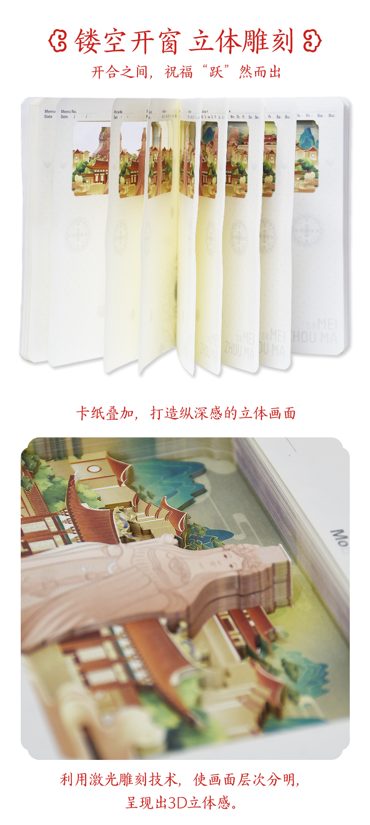湄洲妈一笔如意笔记本套装3D镂空纸雕笔记本创意礼品