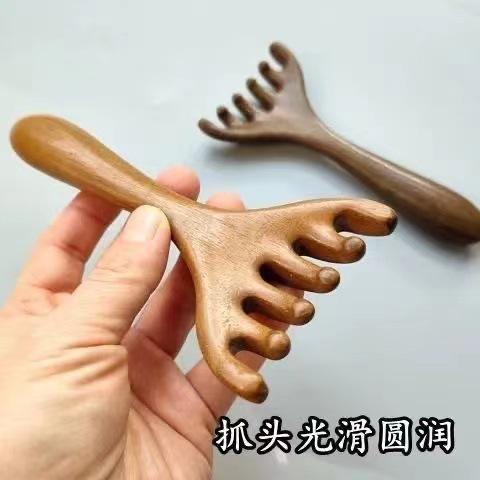 【疏通神器❗️五爪头部按摩经络梳子】手柄圆滑可点按穴位,宽齿耙更舒适,爪头雨滴设计不伤皮肤,抓头光滑圆润,养生头疗工具天然檀木头皮鹿角刮痧QQ