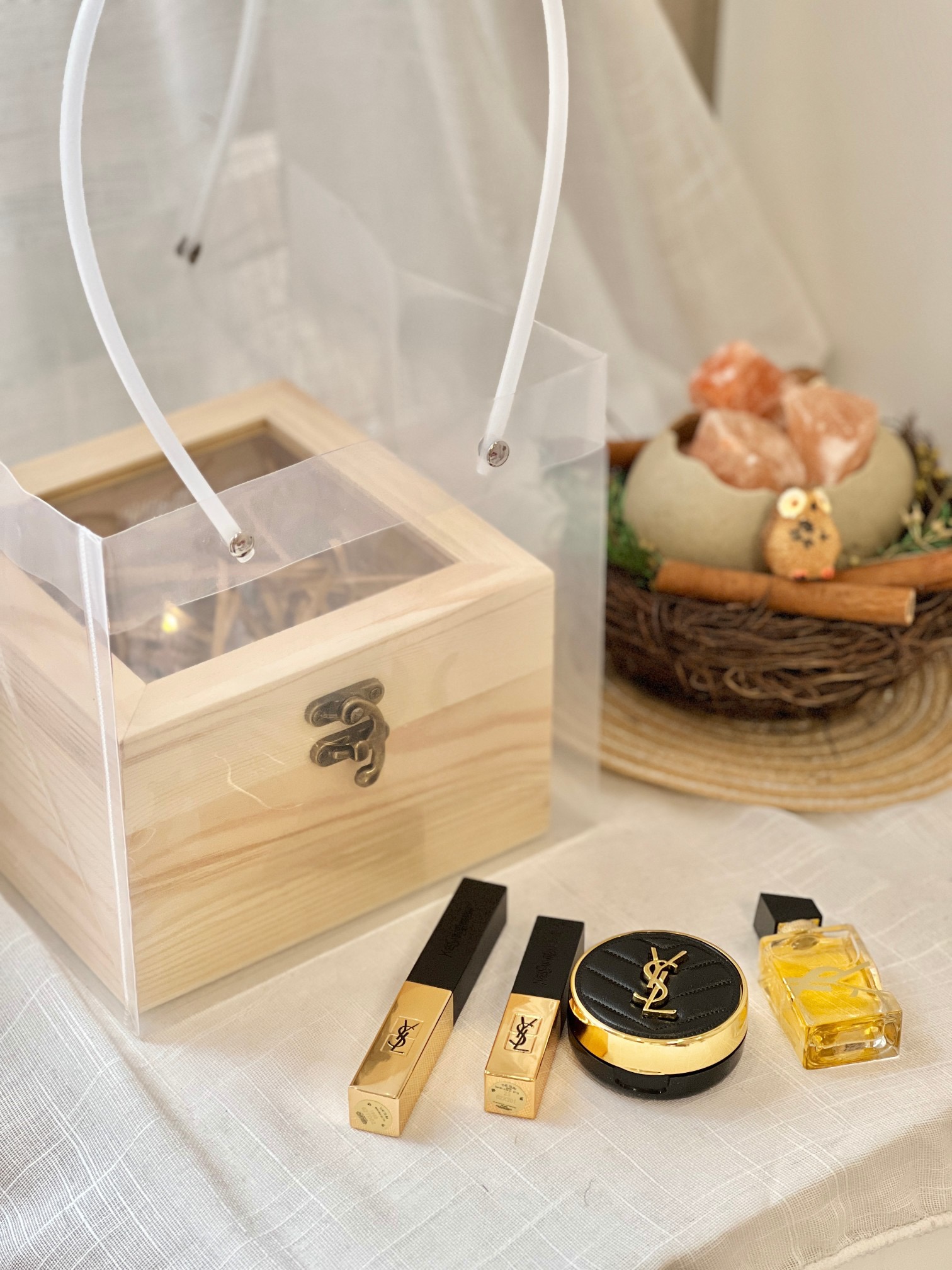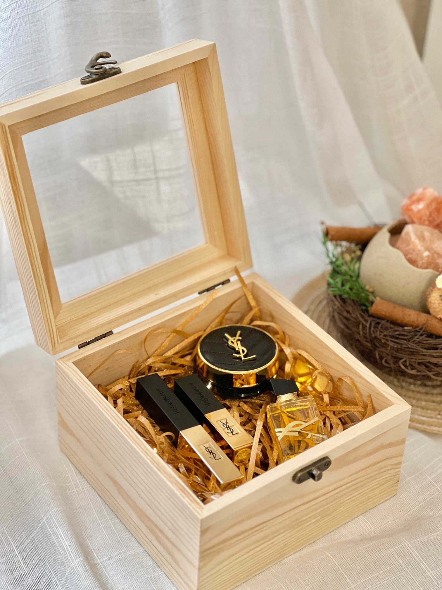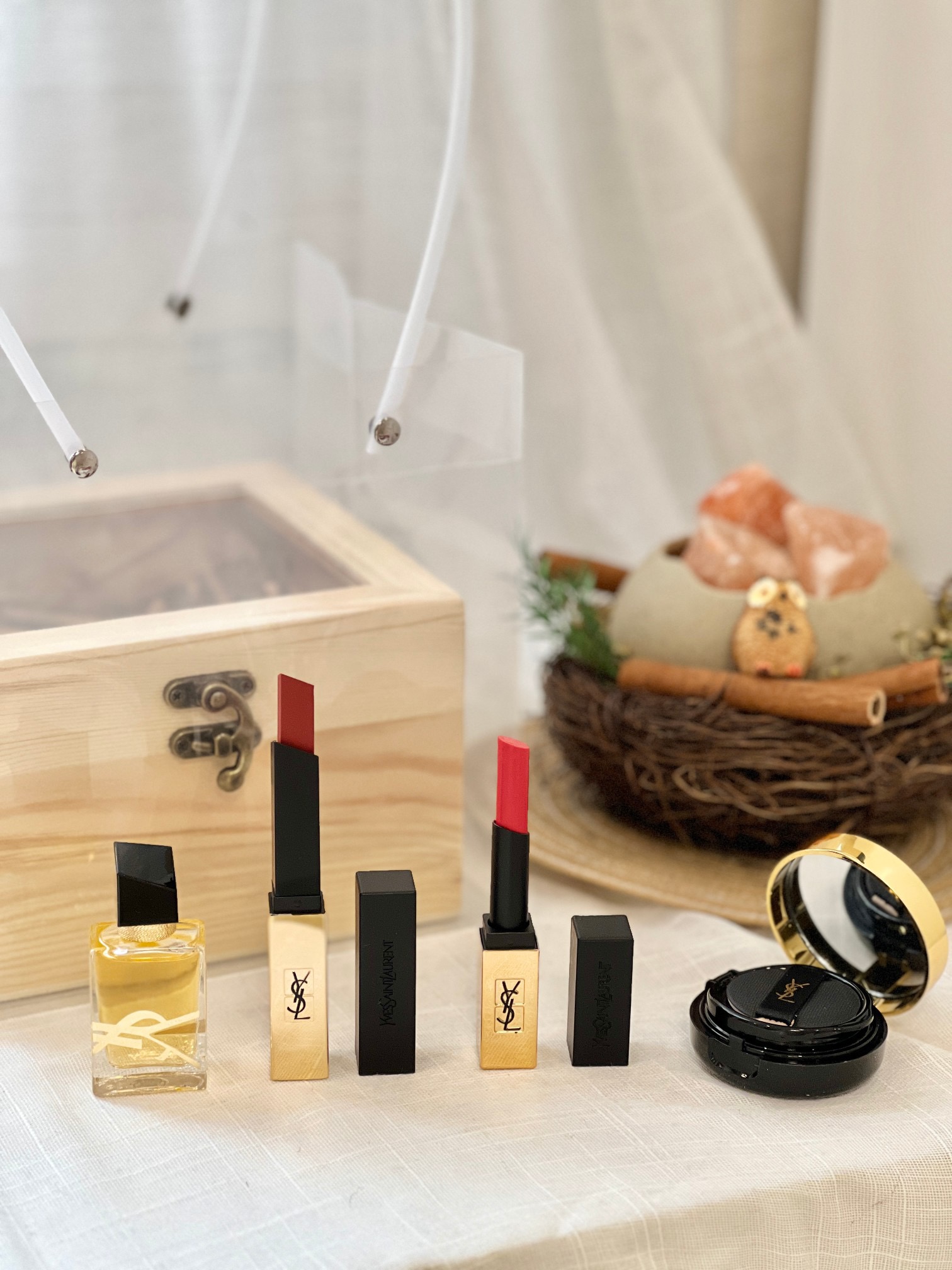 【告白礼盒 】女孩子醉心动的礼物来啦~看到对象激动难以言表眼神 那一刻就知道拿捏了!可以告白的一款套盒,透着芳香的木质礼盒,非常有质感,其次里面的东西更是让人心仪!无法复刻的高定红棕 我愿称之为红棕天花板的1966# 醉爱的颜色和醉爱的系列质地。搭配小金条23#+气垫粉底液10#+自由之水!