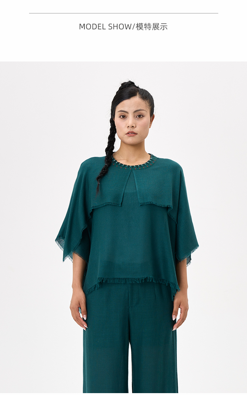 羊绒圆领斗篷式女上衣 SJF97W342N