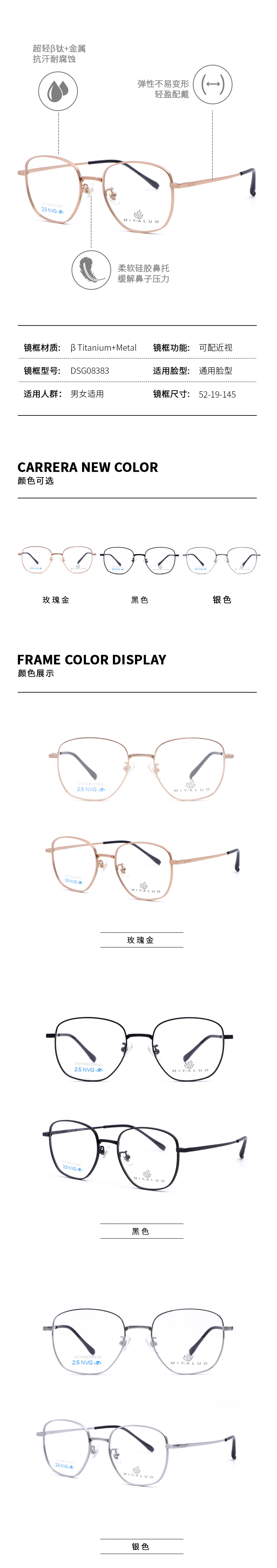 DSG08383 米亚罗MIYALUO 新款光学镜架 全钛合金钛架 DSG08383
