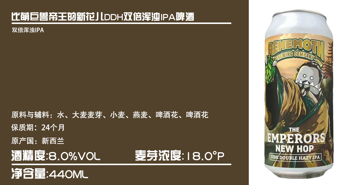 【冷库储存】新西兰比萌巨兽帝王的新花儿DDH双倍浑浊IPA啤酒 8.0%vol 440ml
