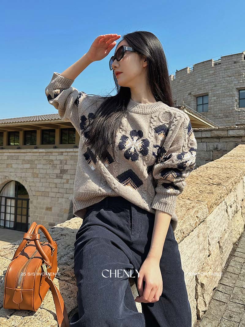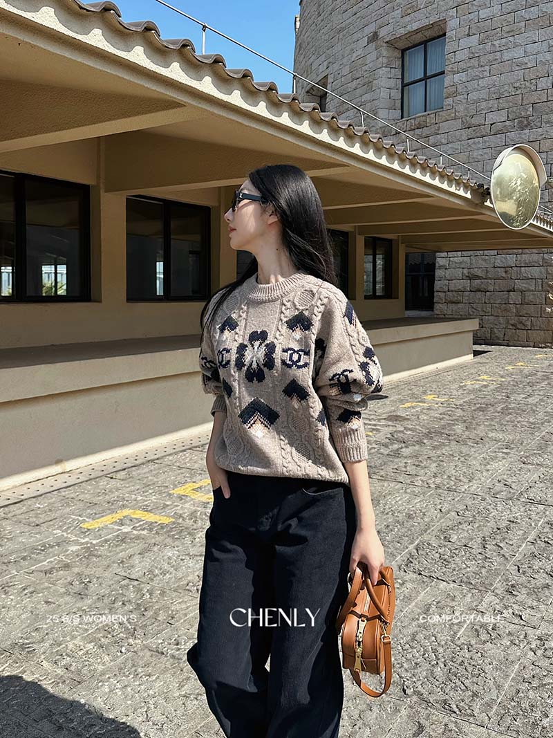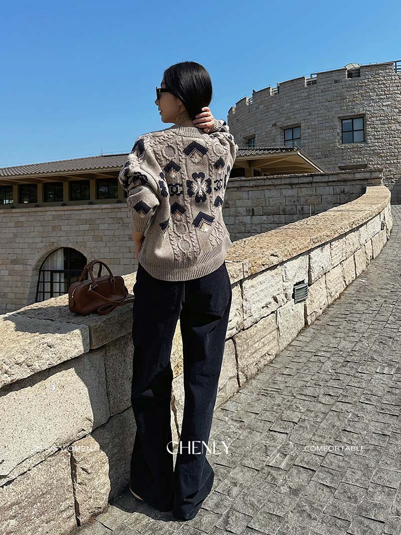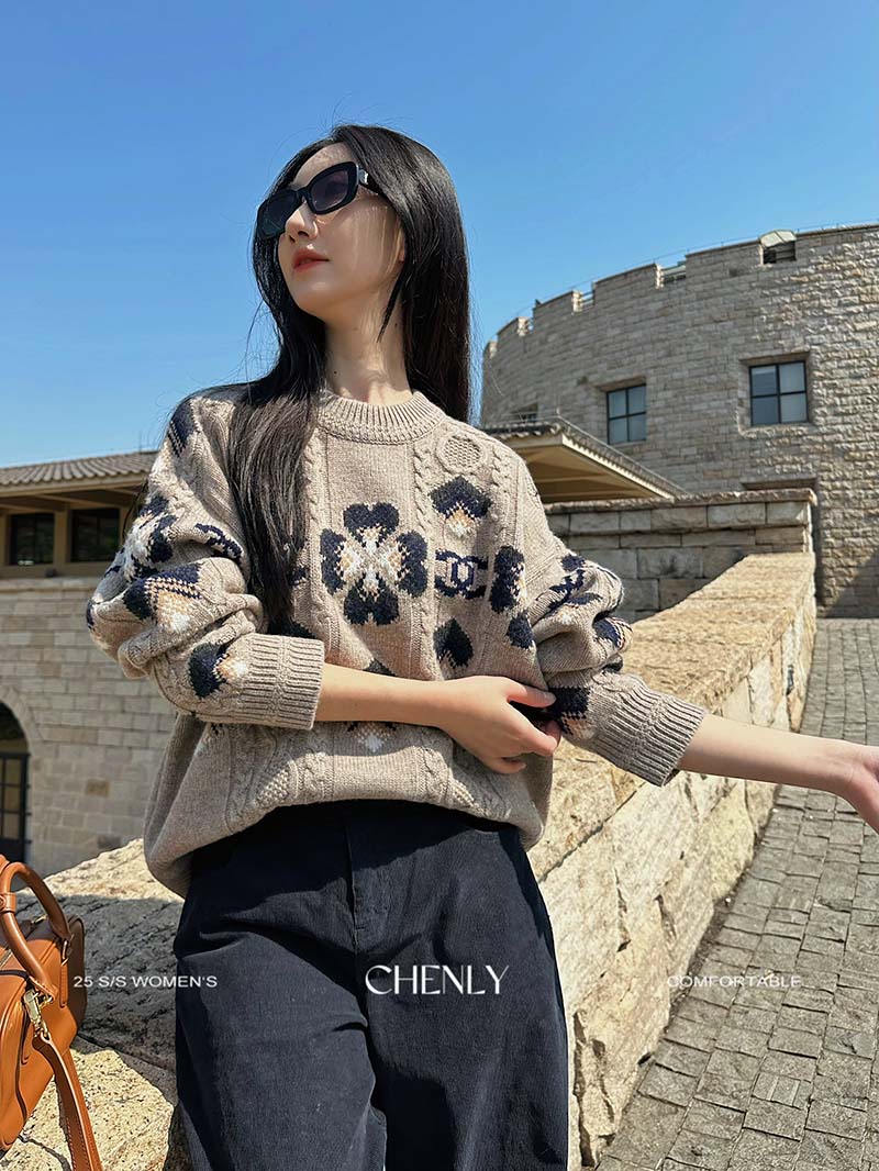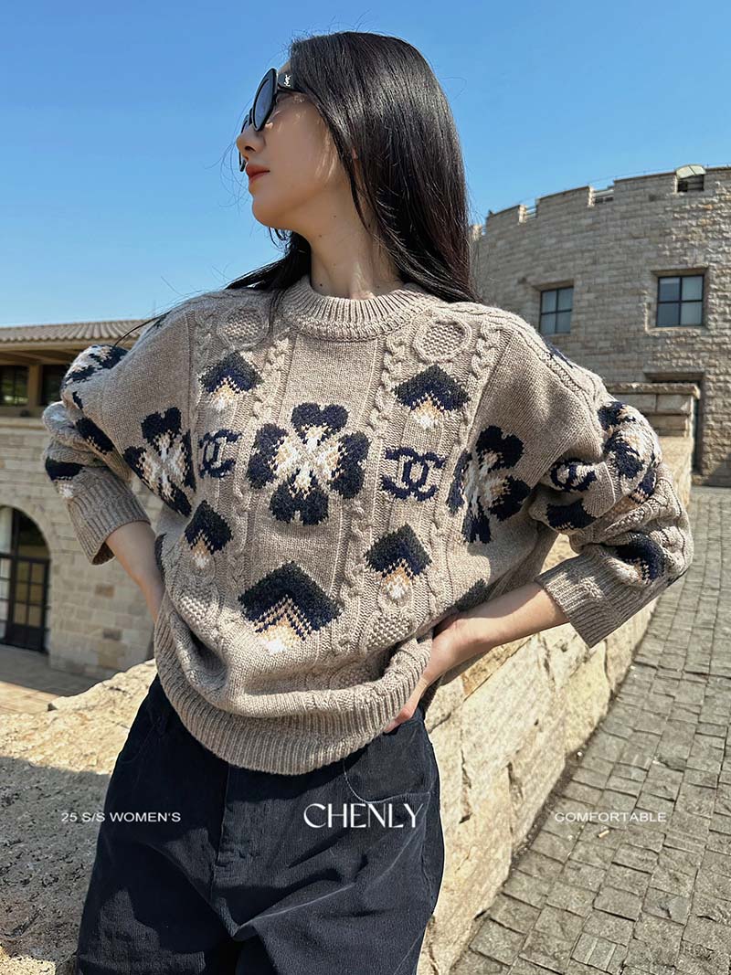 尘衣|25春夏四叶草提花真丝羊毛毛衣