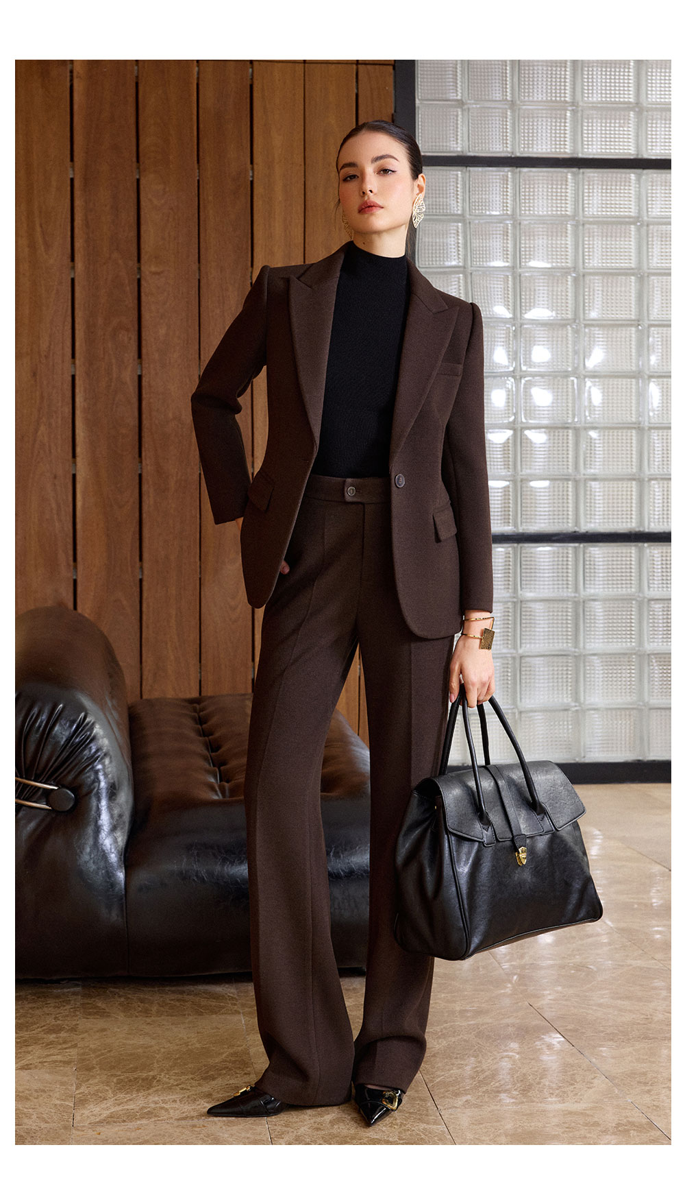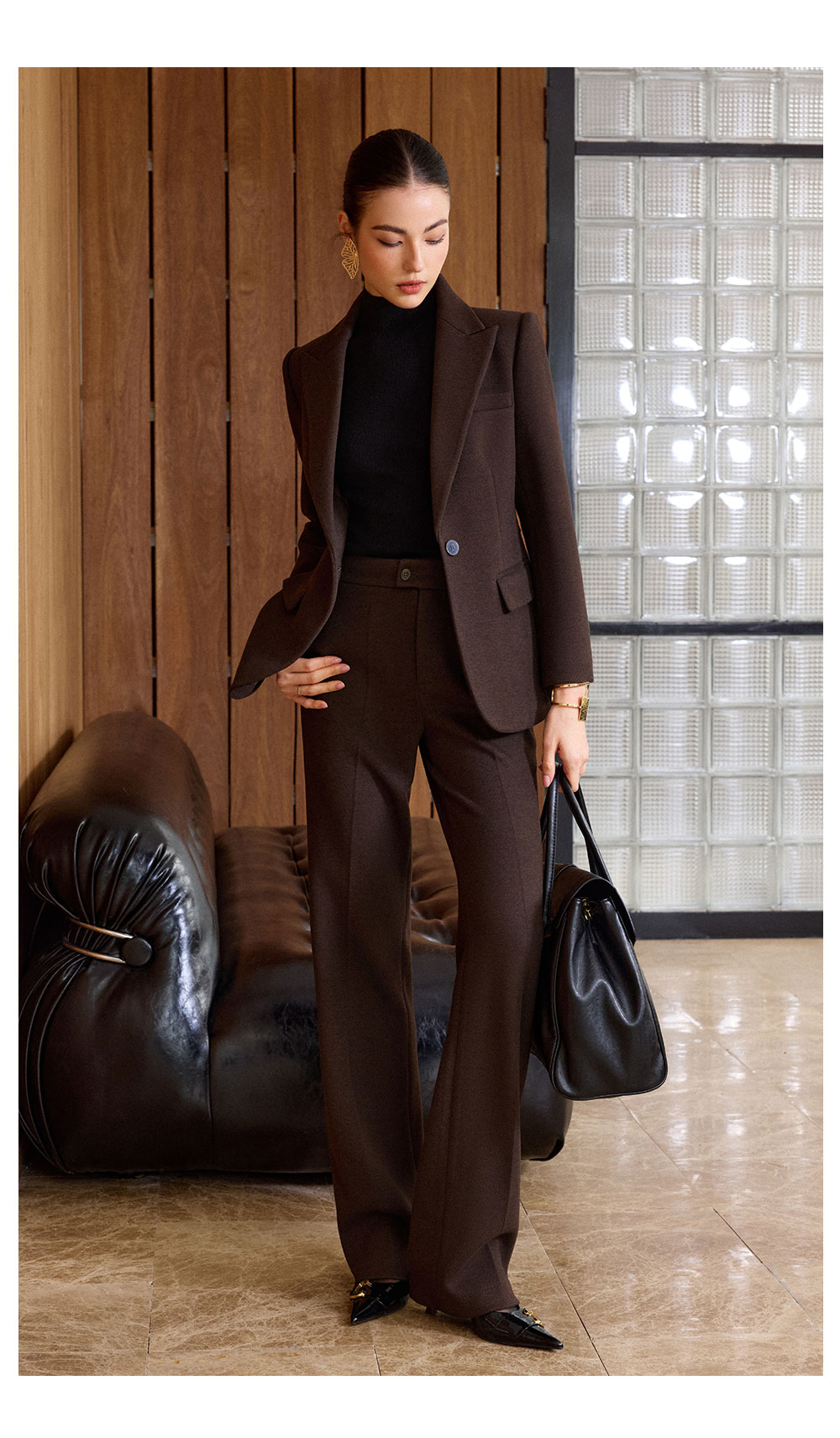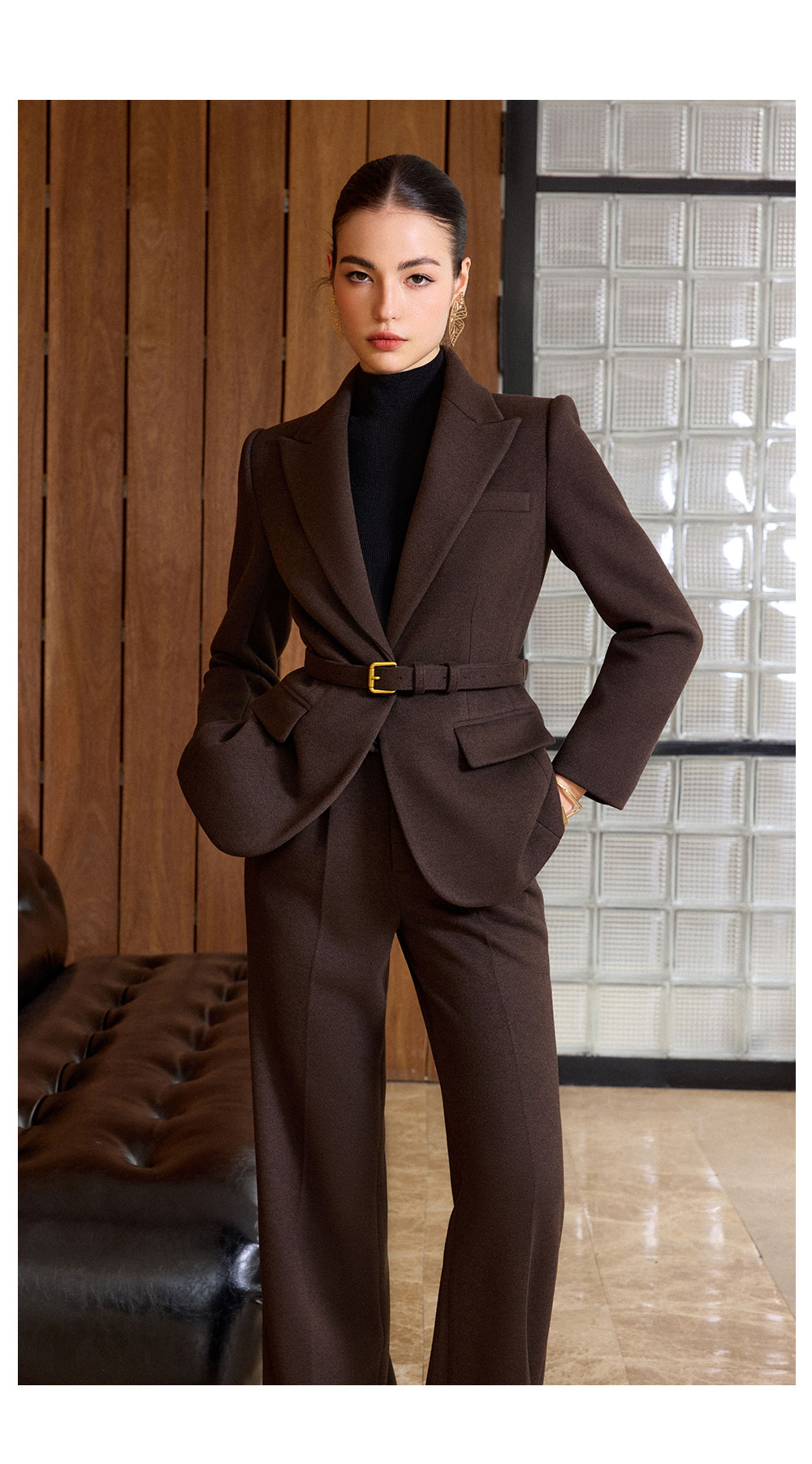 AD韩版气质西装套装女2025新款高智感毛呢阔腿裤两件套羊毛正装冬