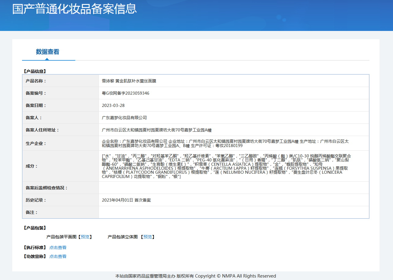雪诗黎黄金肌肽补水蕾丝面膜(40g*10片装)