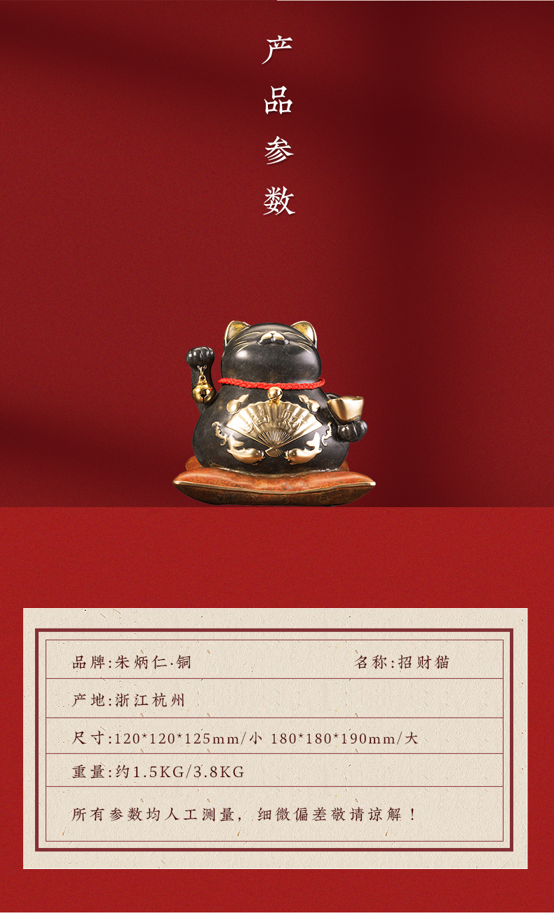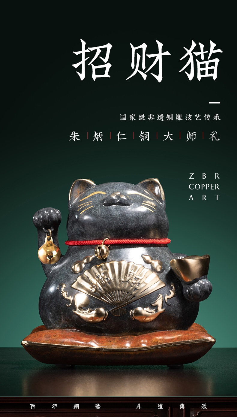 【6F】朱炳仁铜 招财猫 家居装饰艺术工艺品正品礼品招财办公室猫摆件
