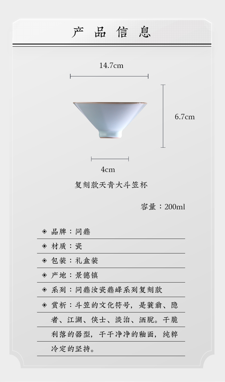 问鼎汝瓷复刻款天青大斗笠杯