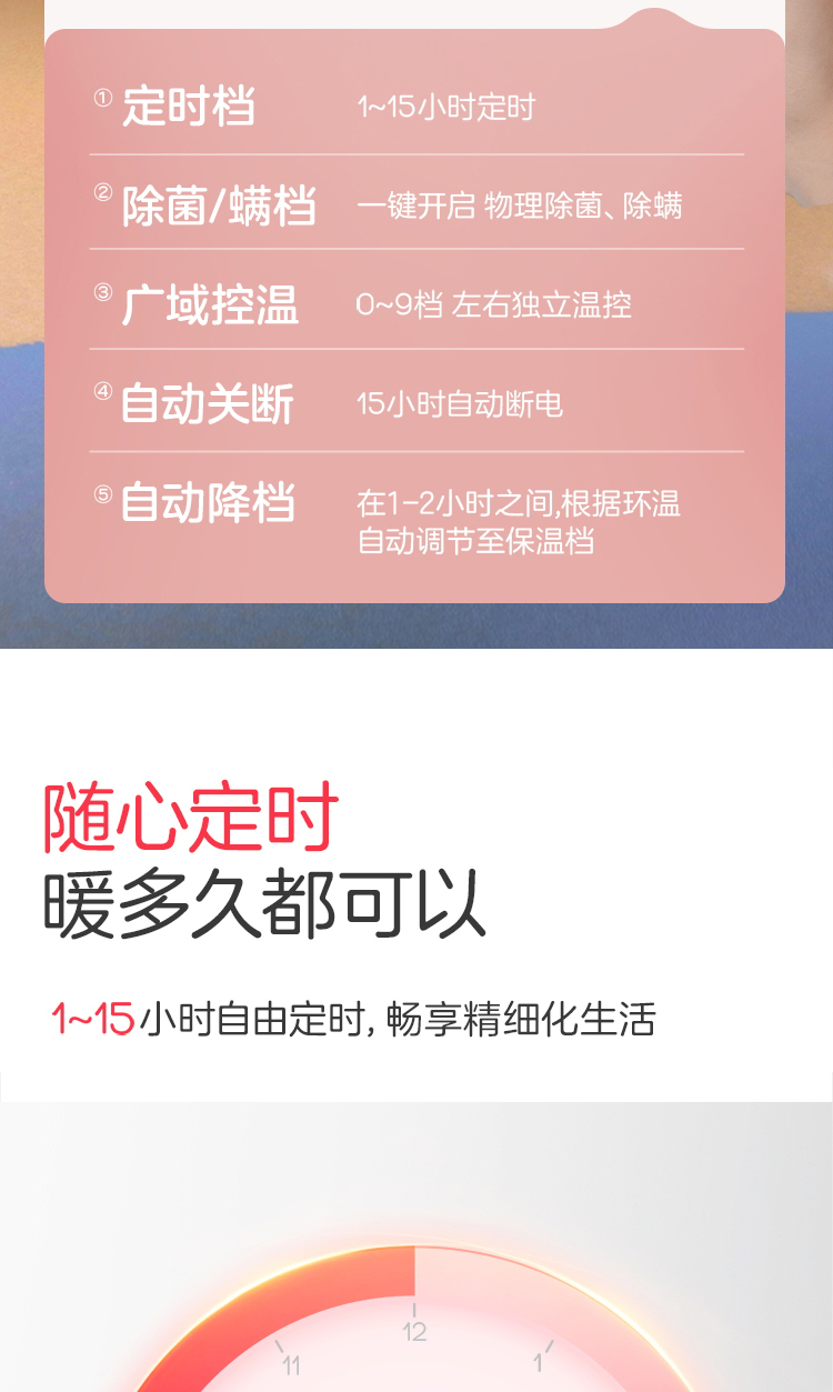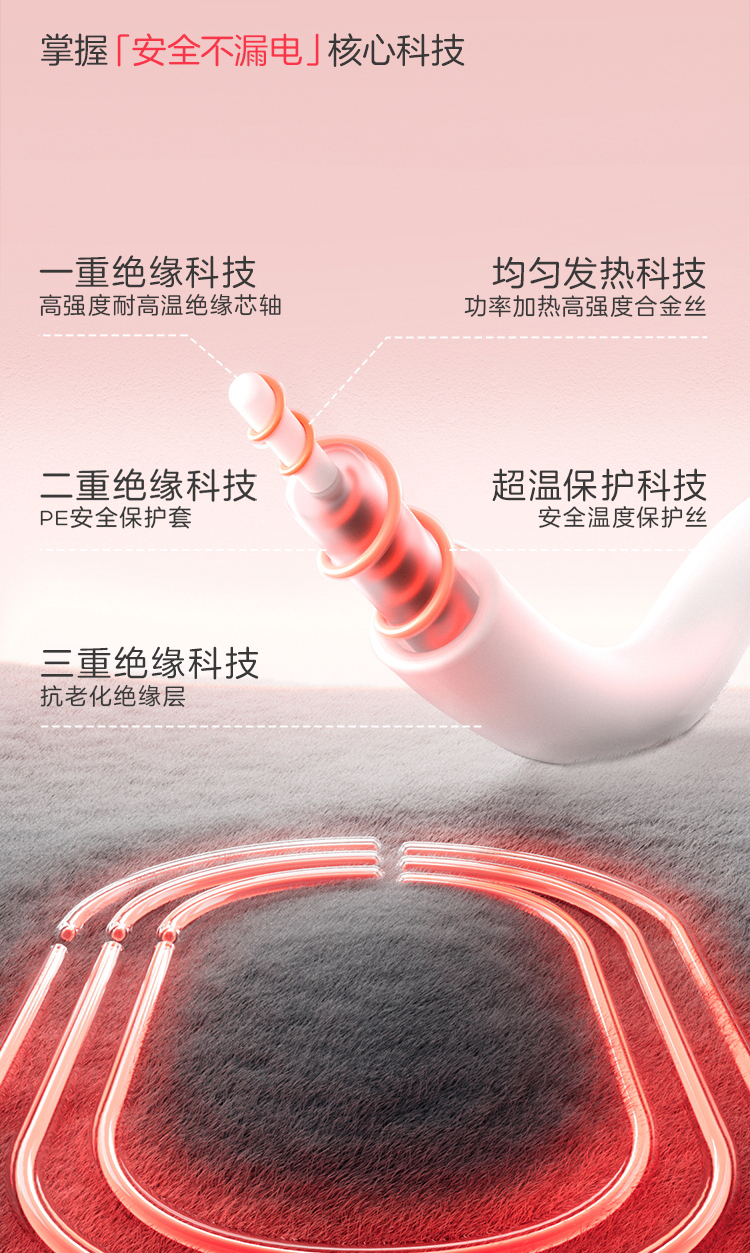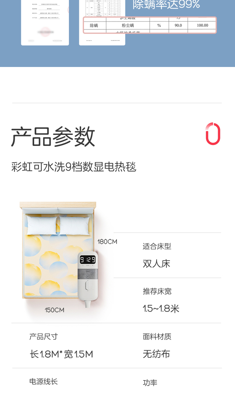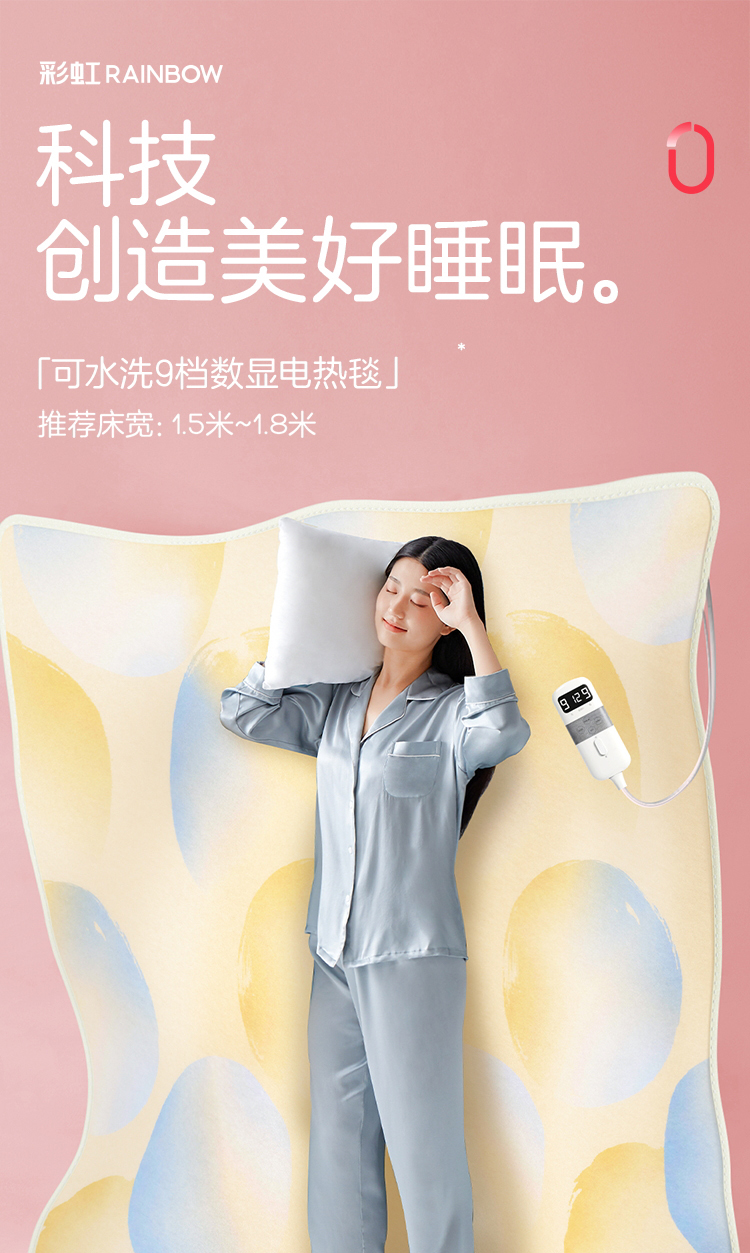 彩虹全线路安全保护双控双温电热毯(印花+可水洗+9档双控)1855
