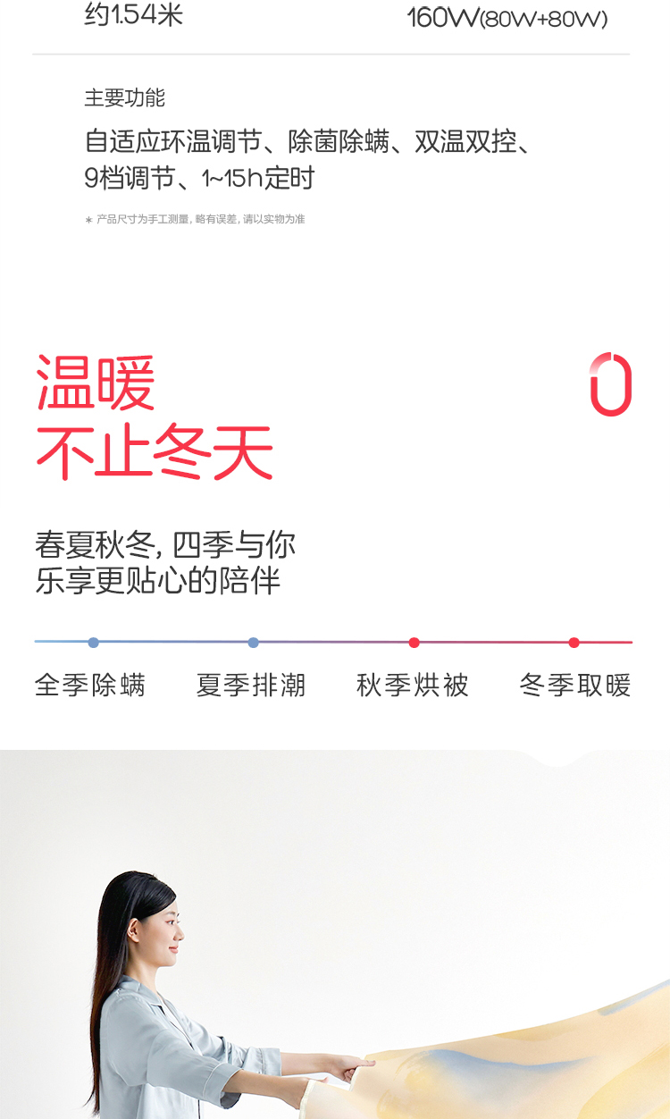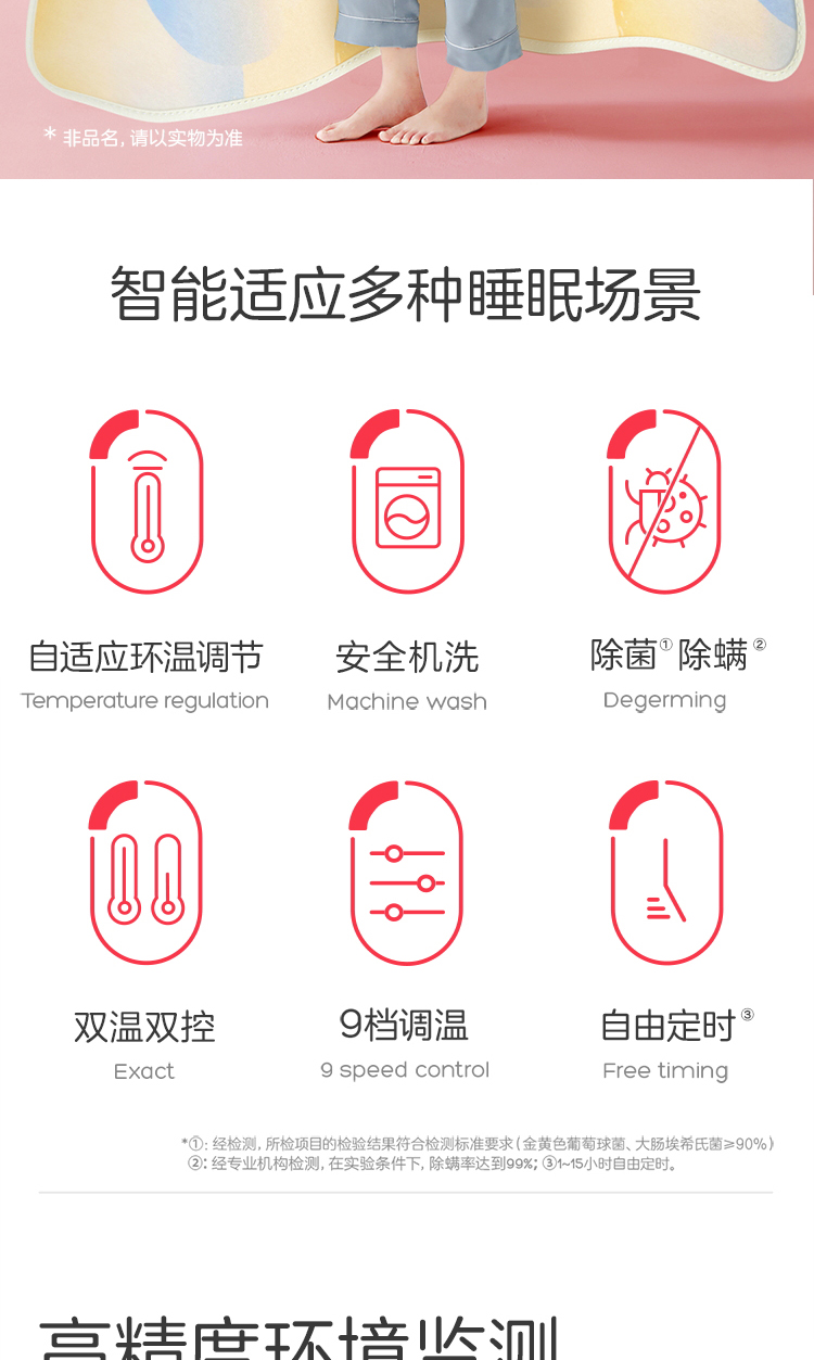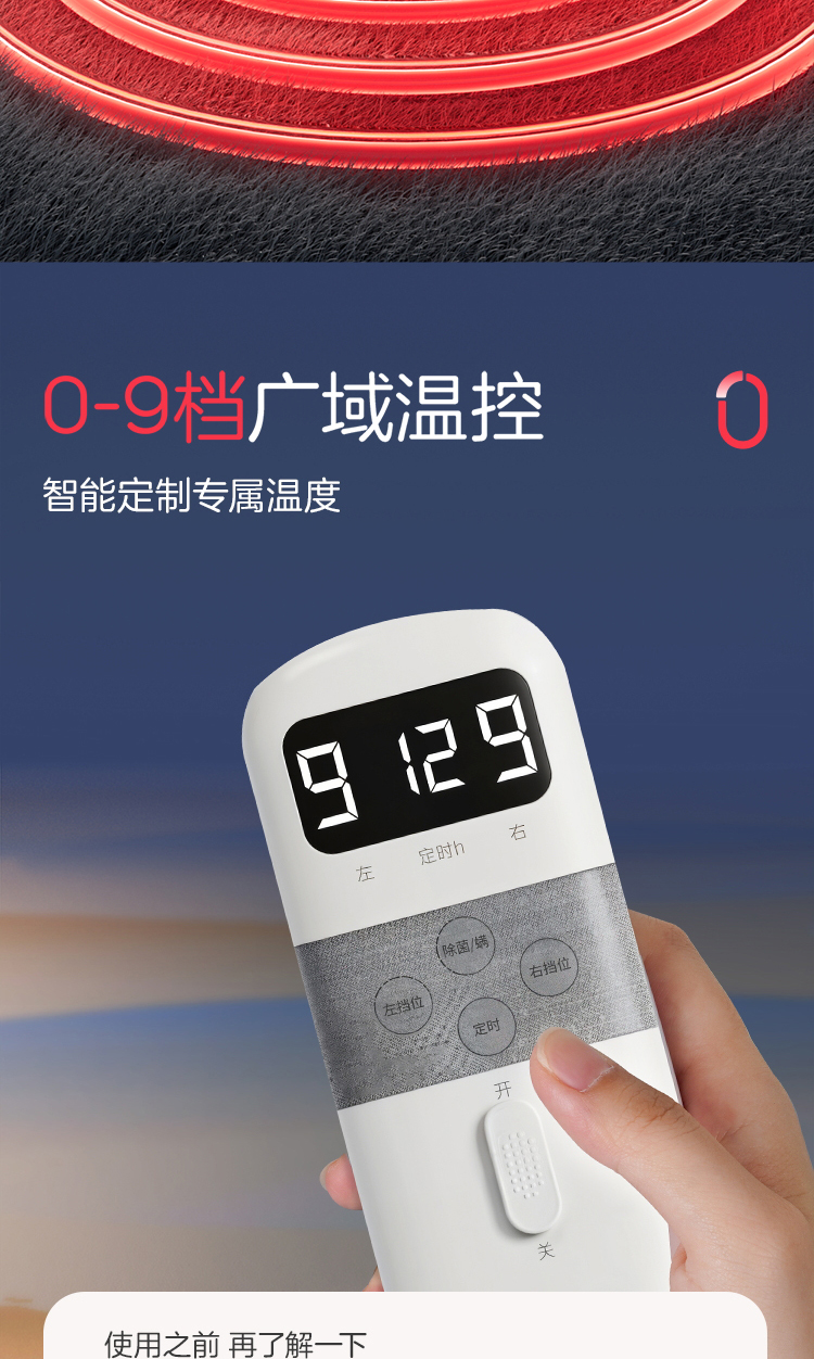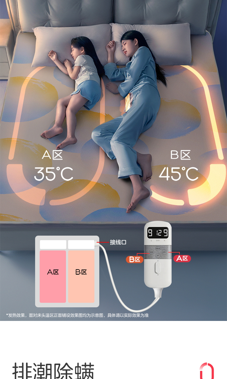 彩虹全线路安全保护双控双温电热毯(印花+可水洗+9档双控)1855