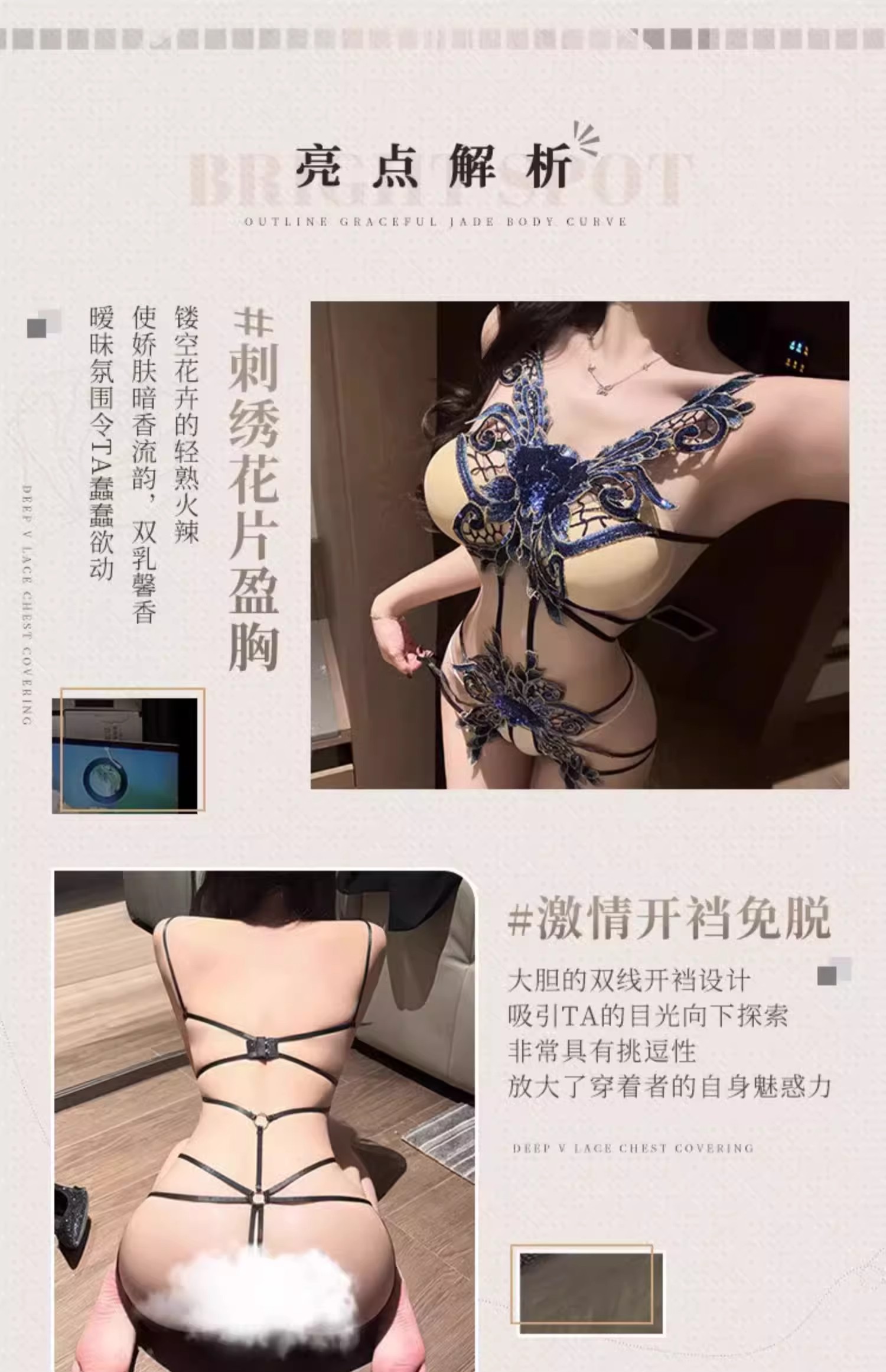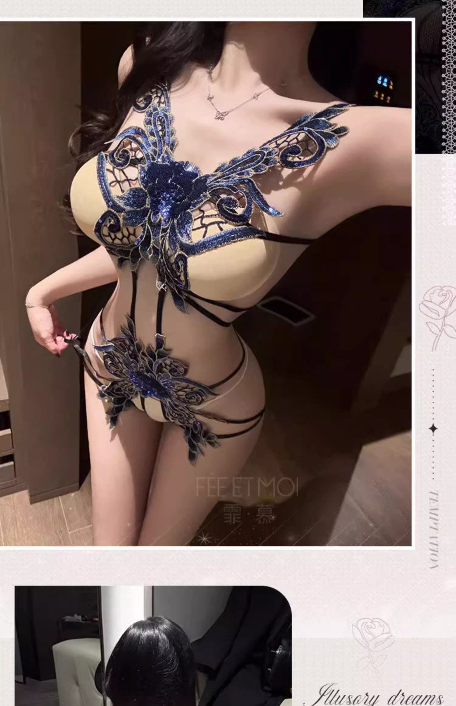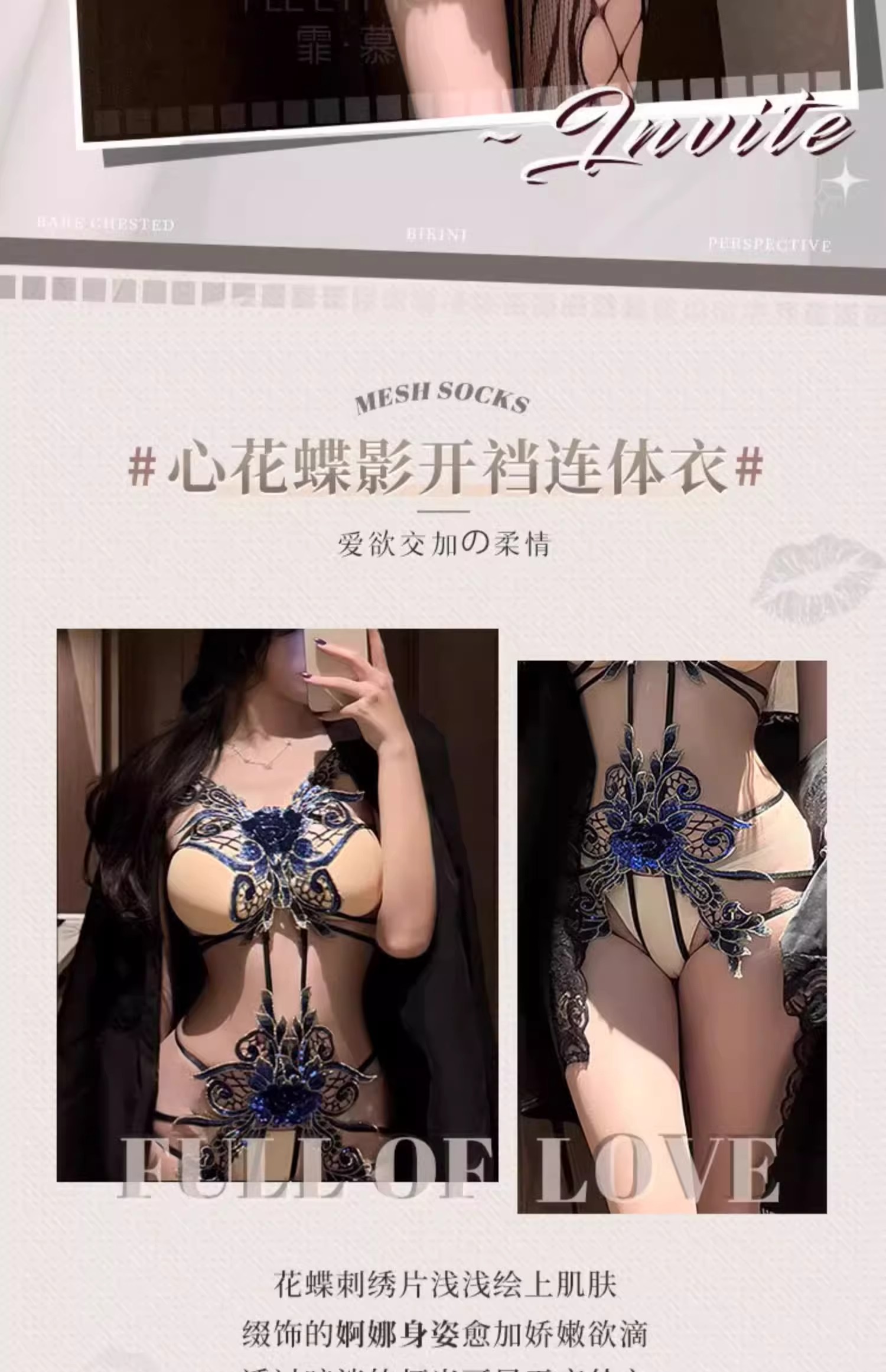 霏慕 心花蝶影绣片开裆连体衣ZY6183