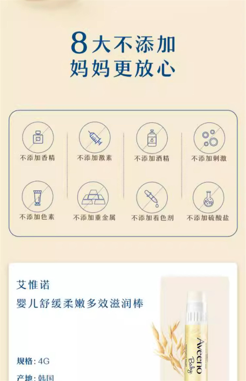【1:1送水凝保湿霜10g】艾惟诺Aveeon艾维诺护唇膏舒缓柔嫩多效滋润棒婴幼儿口水护唇膏无香型4g