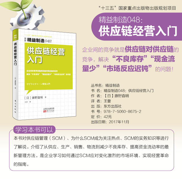 《精益制造048:供应链经营入门》这本书的目的是使SCM得本质变得简单易读。本书将对何为SCM,SCM的必要性、背景等知识进行简单明了的入门解读。除理念外,还将具体介绍基于实践的SCM策略。
