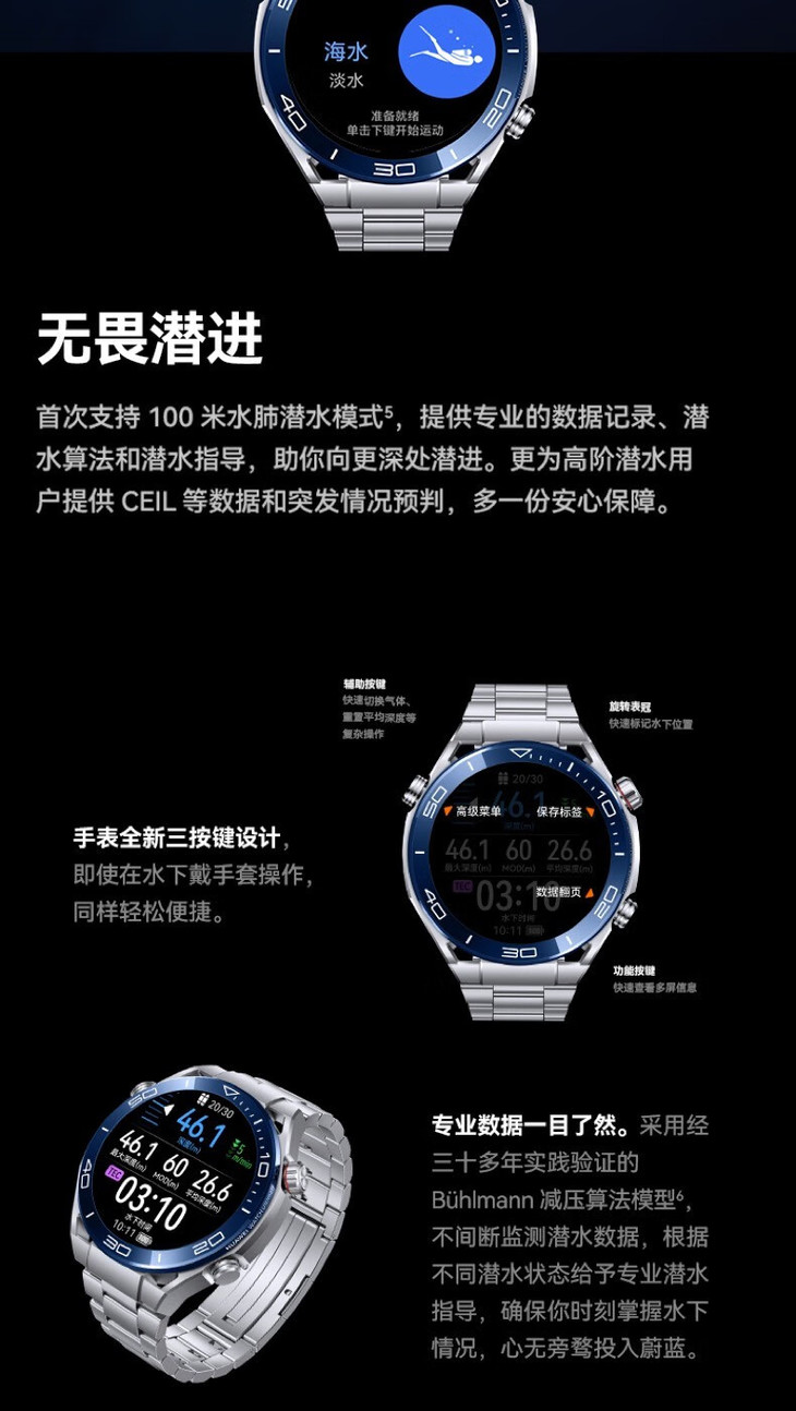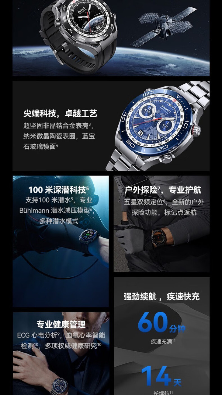 华为WATCH Ultimate华为专业潜水智能 腕表手表长续航血氧北斗卫星消息户外探险运动手表