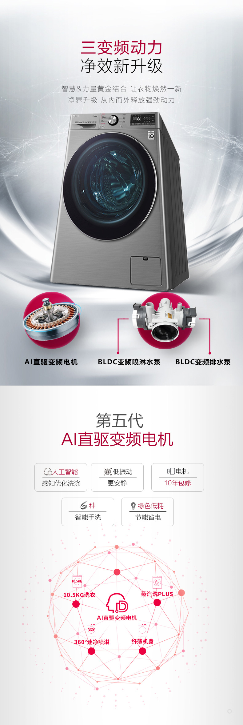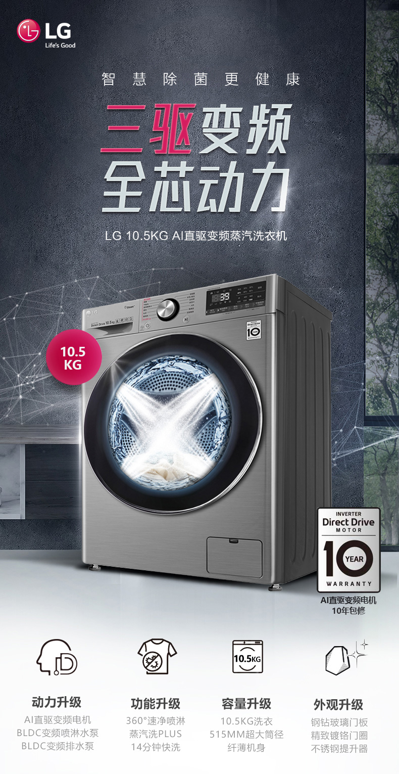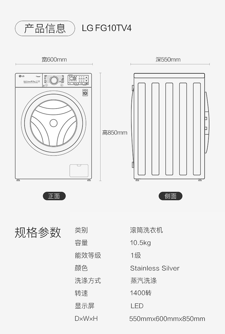【LG】FG10TV4蒸汽洗衣机+RC90V9KV2W热泵干衣机套餐