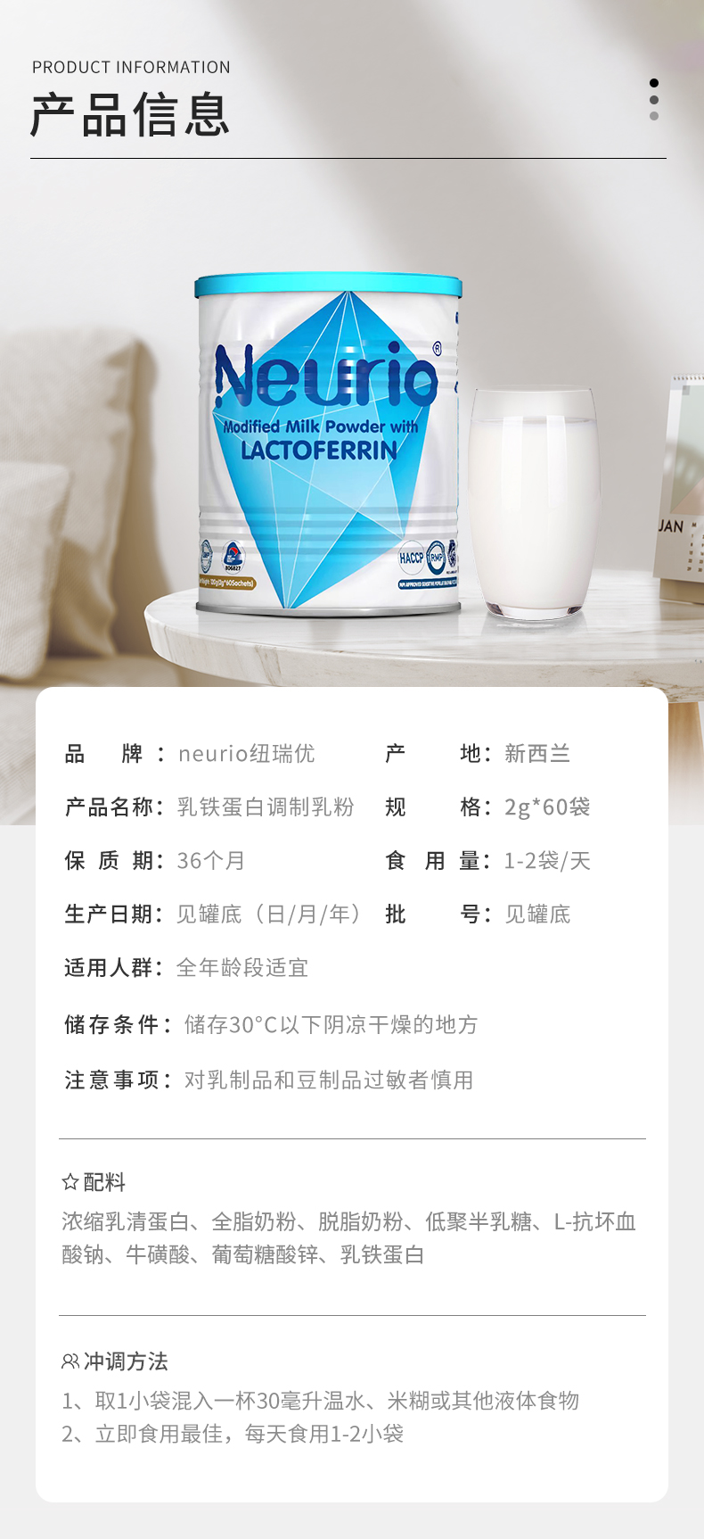 neurio纽瑞优乳铁蛋白调制乳粉免疫版新西兰宝宝营养品