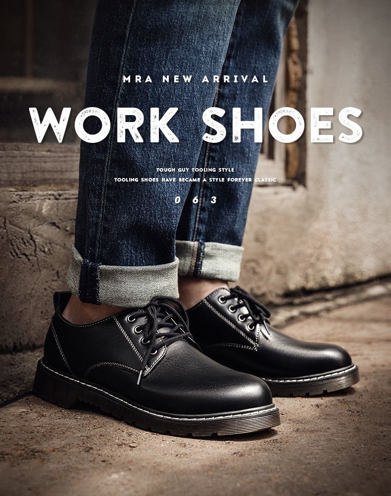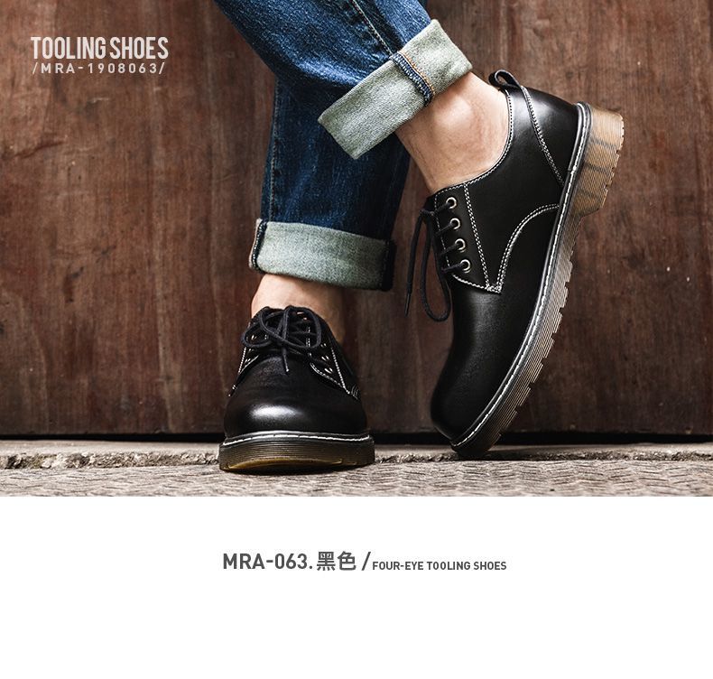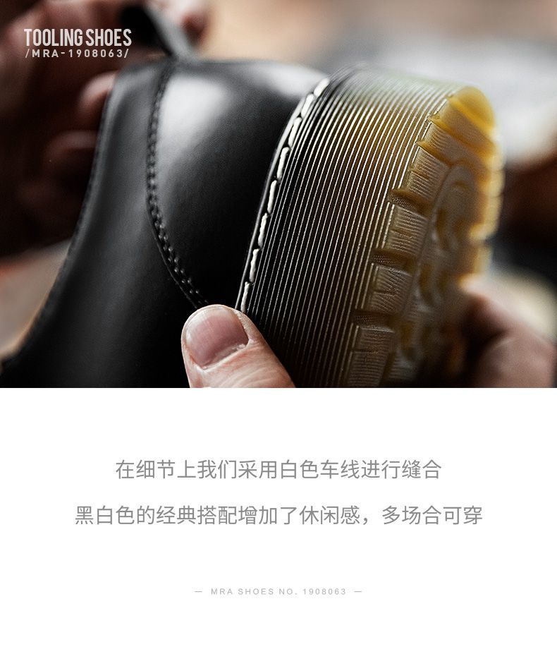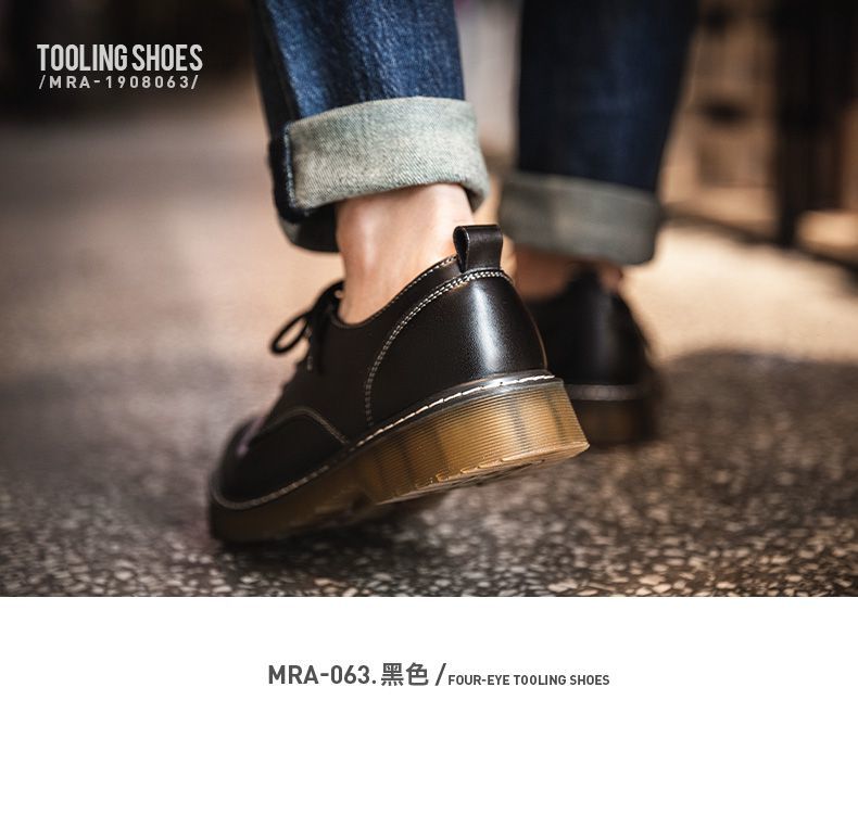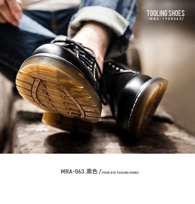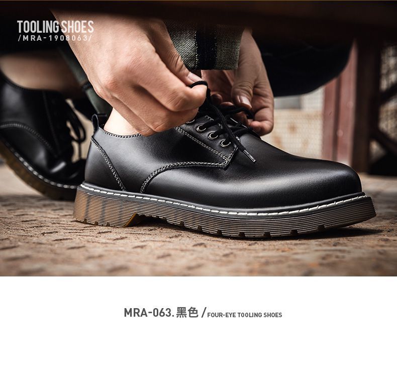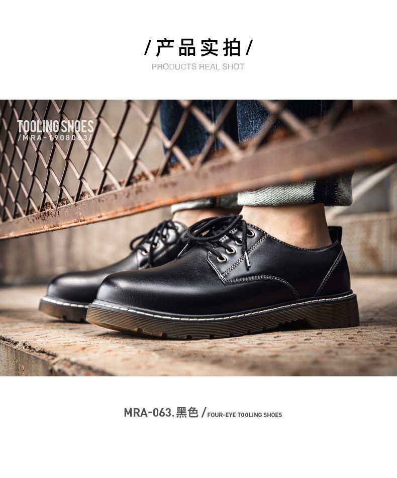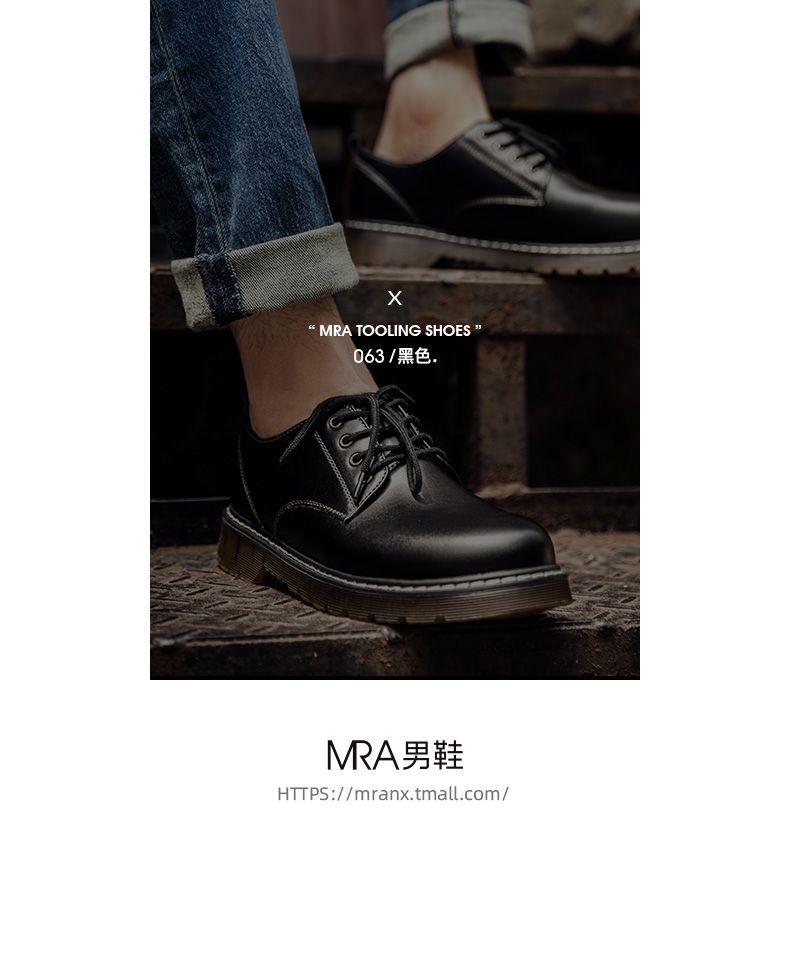 MRA 男鞋2021新款黑色真皮工装马丁靴低帮百搭英伦大头休闲皮鞋潮鞋子