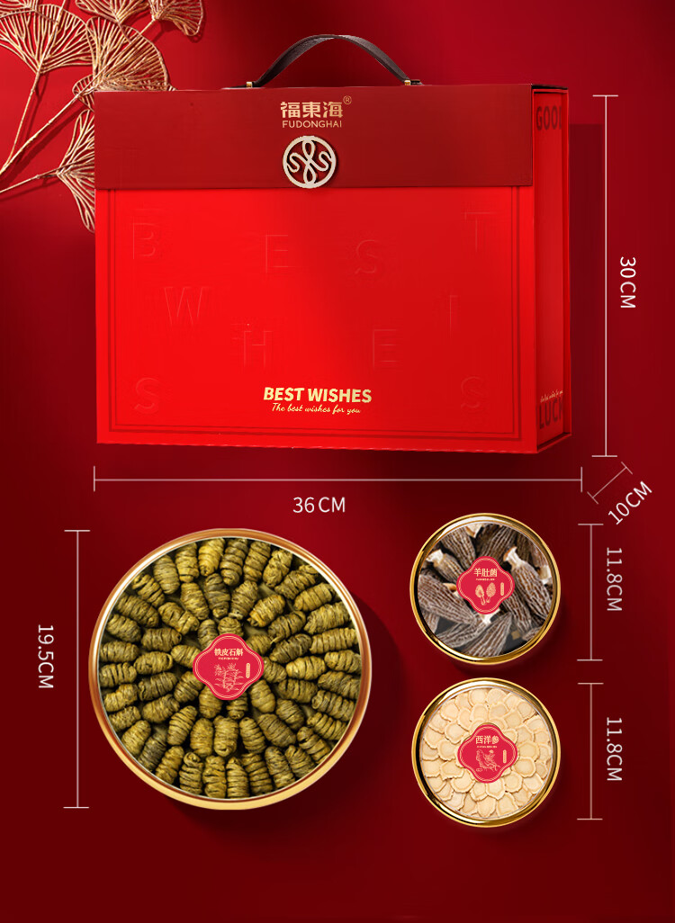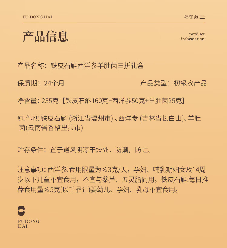 福东海 铁皮石斛西洋参片羊肚菌三拼礼盒235克 礼品送长辈团购