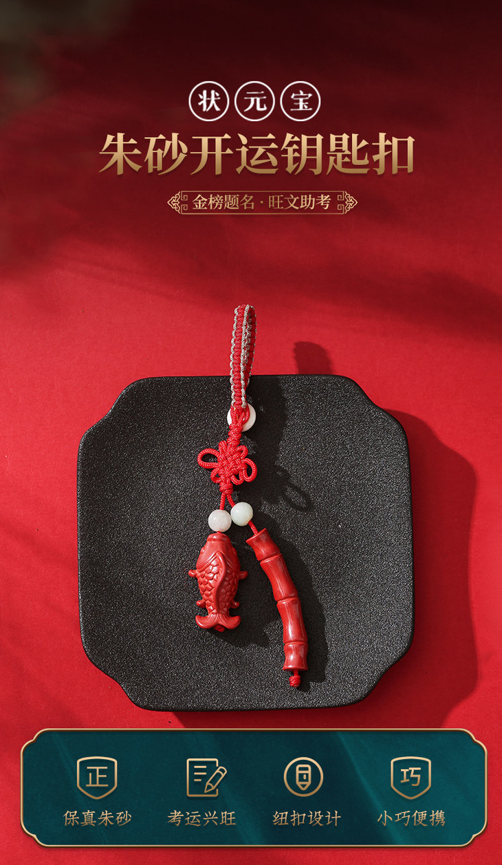 灵机吉品 | 鱼跃龙门朱砂手机扣钥匙扣