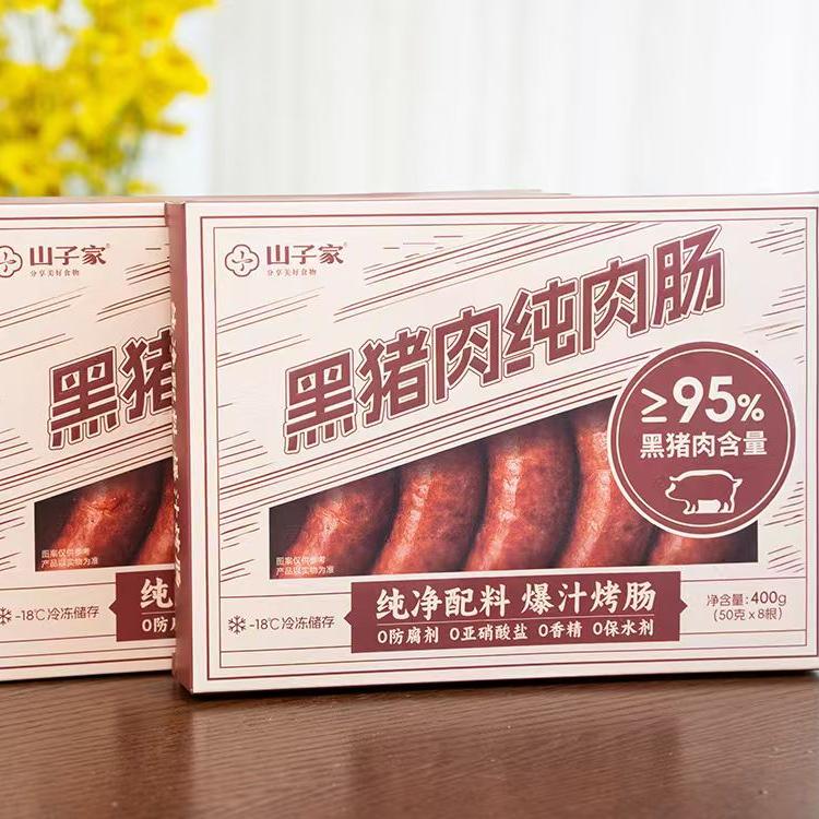 【黑猪肉纯肉肠】95%黑猪肉爆汁烤肠! 咬一口,满嘴爆香,吃出肉本味!关键是配料纯净,不加鸡肉,不用保水剂,无任何添加剂! 400克/盒(50克*8根),江浙沪皖顺丰包邮~