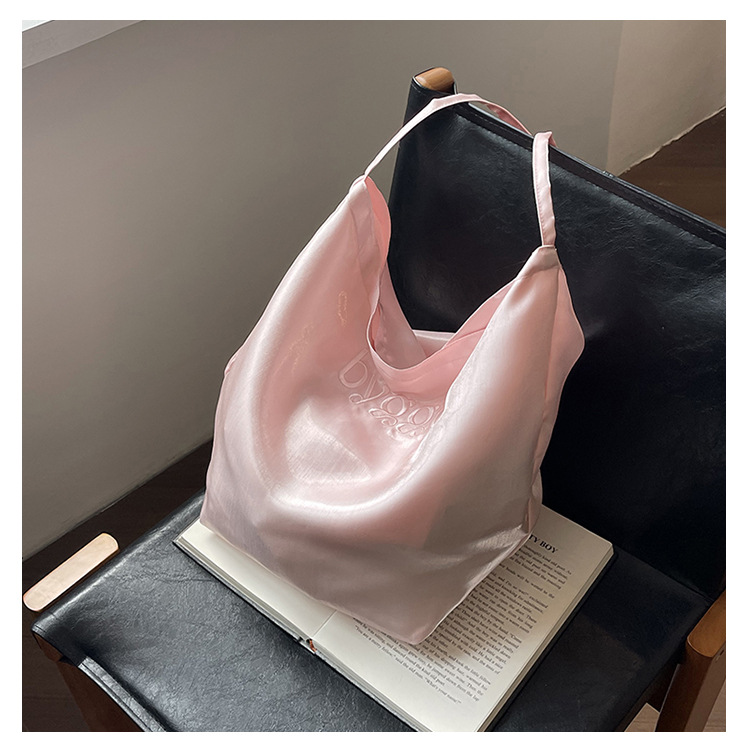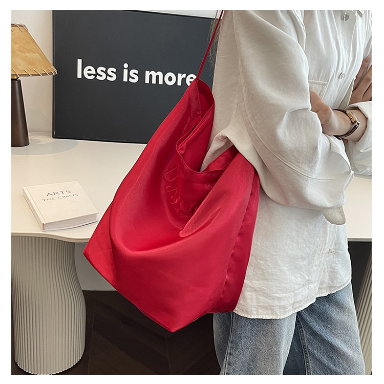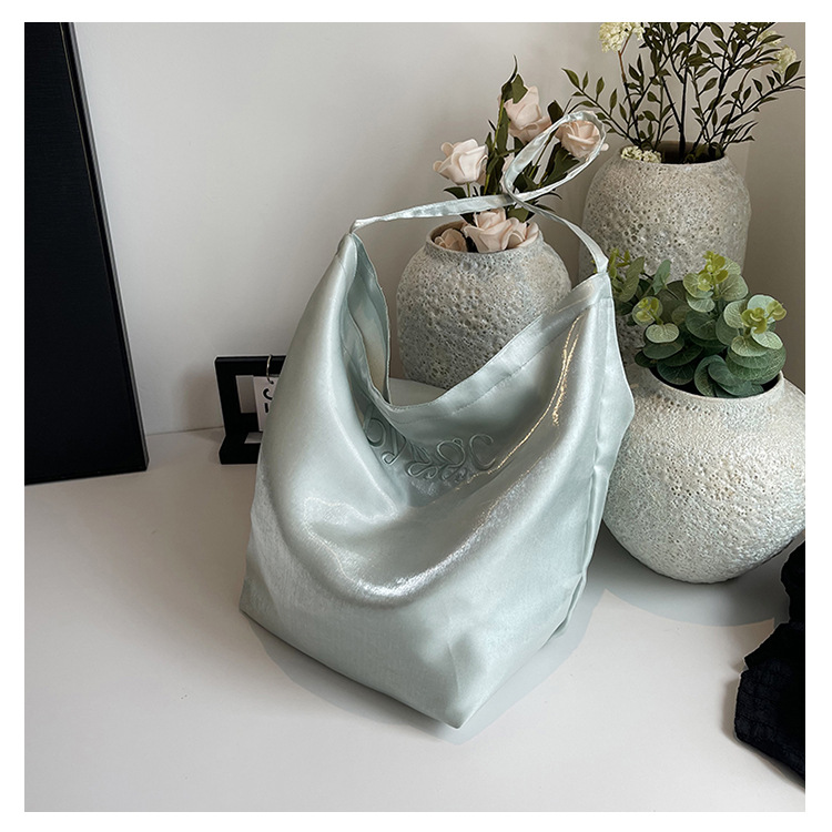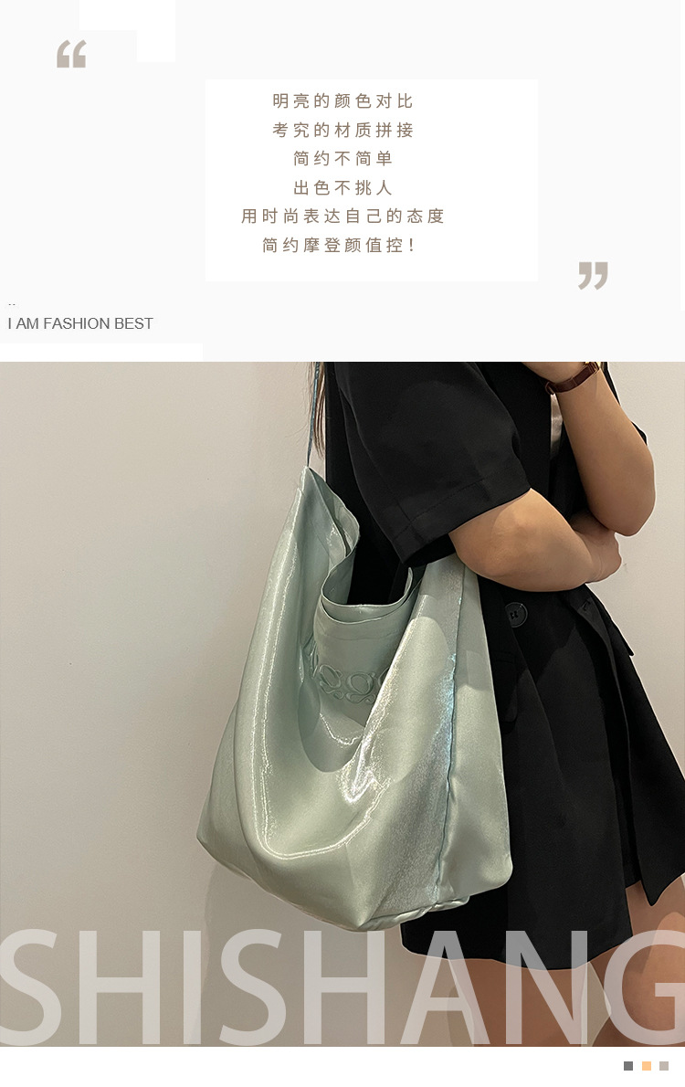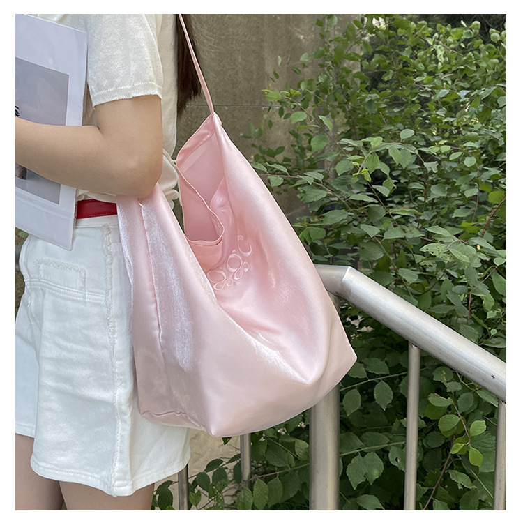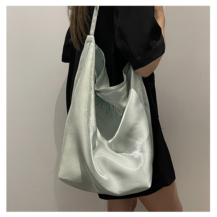 韩国新款丝光双面托特包女2024小众设计单肩包ins休闲通勤水桶包HLY