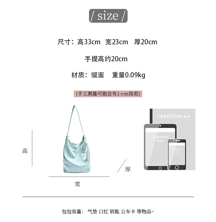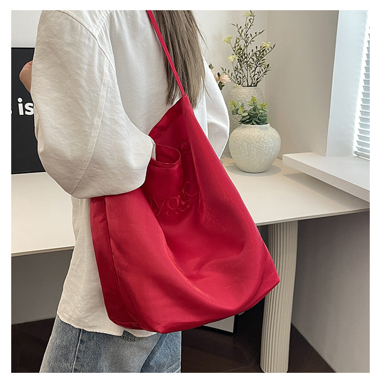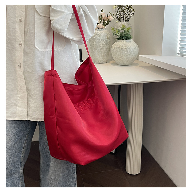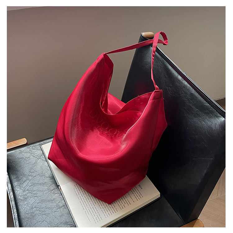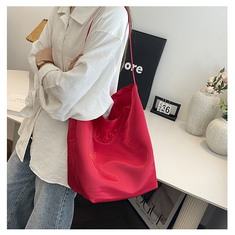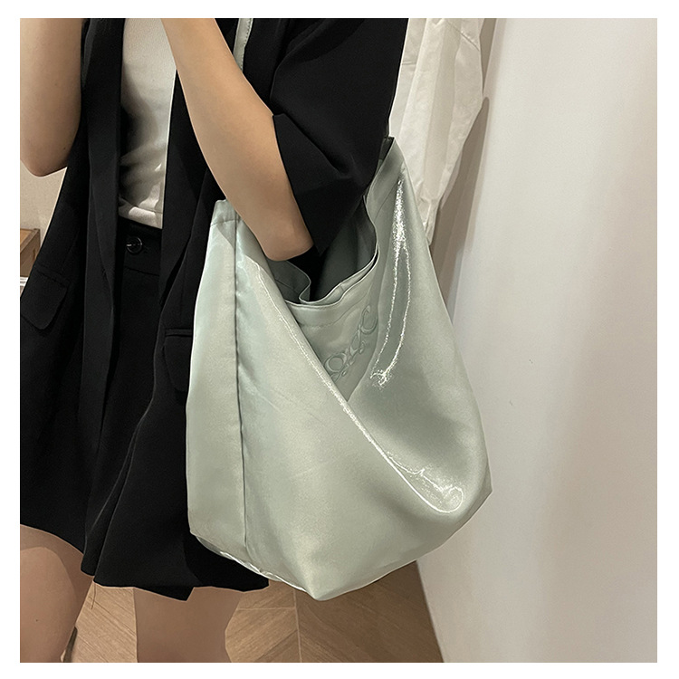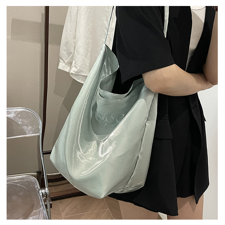 韩国新款丝光双面托特包女2024小众设计单肩包ins休闲通勤水桶包HLY