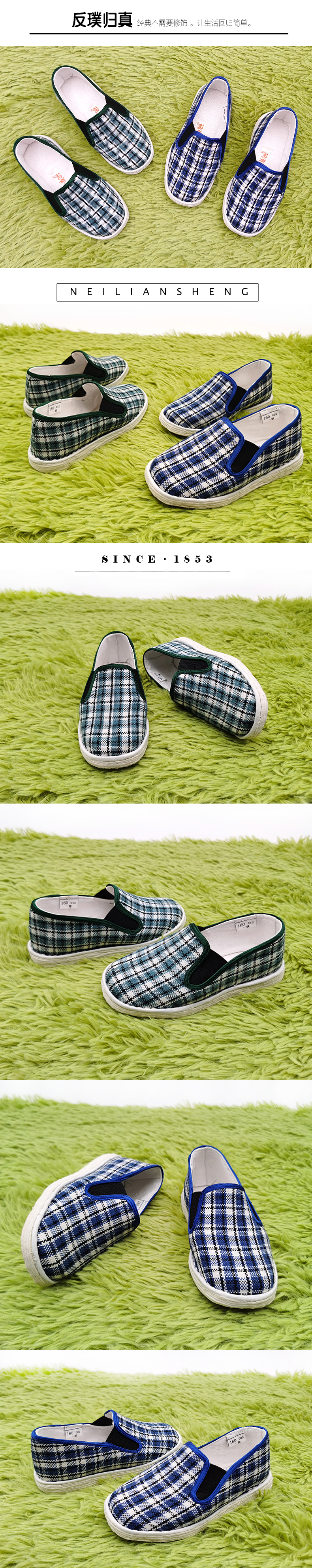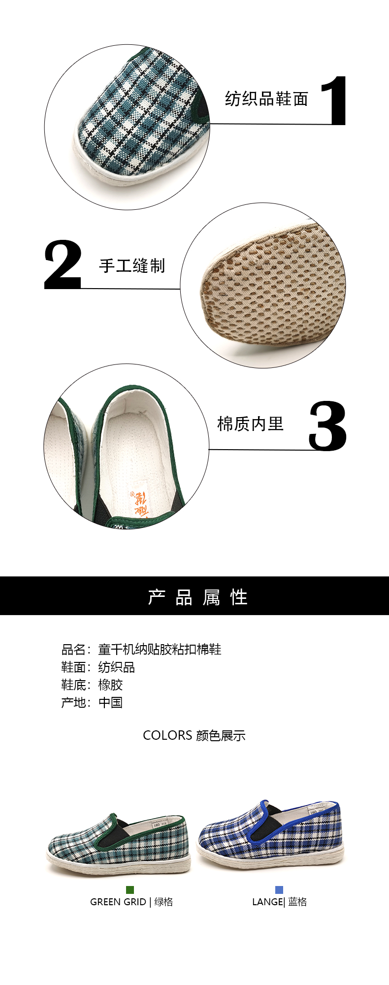 内联升童鞋手工单鞋千层底格呢巾舌边5425C