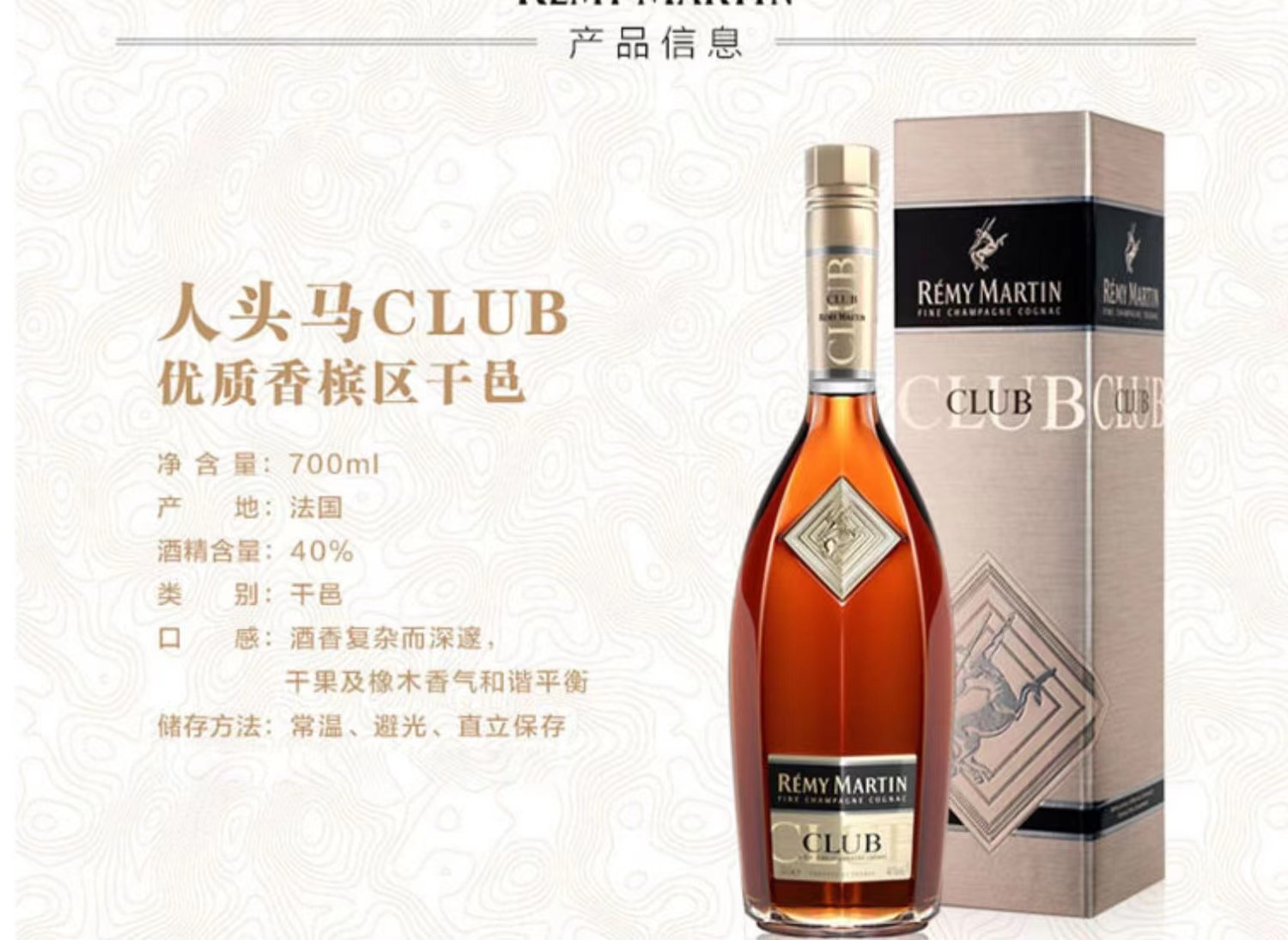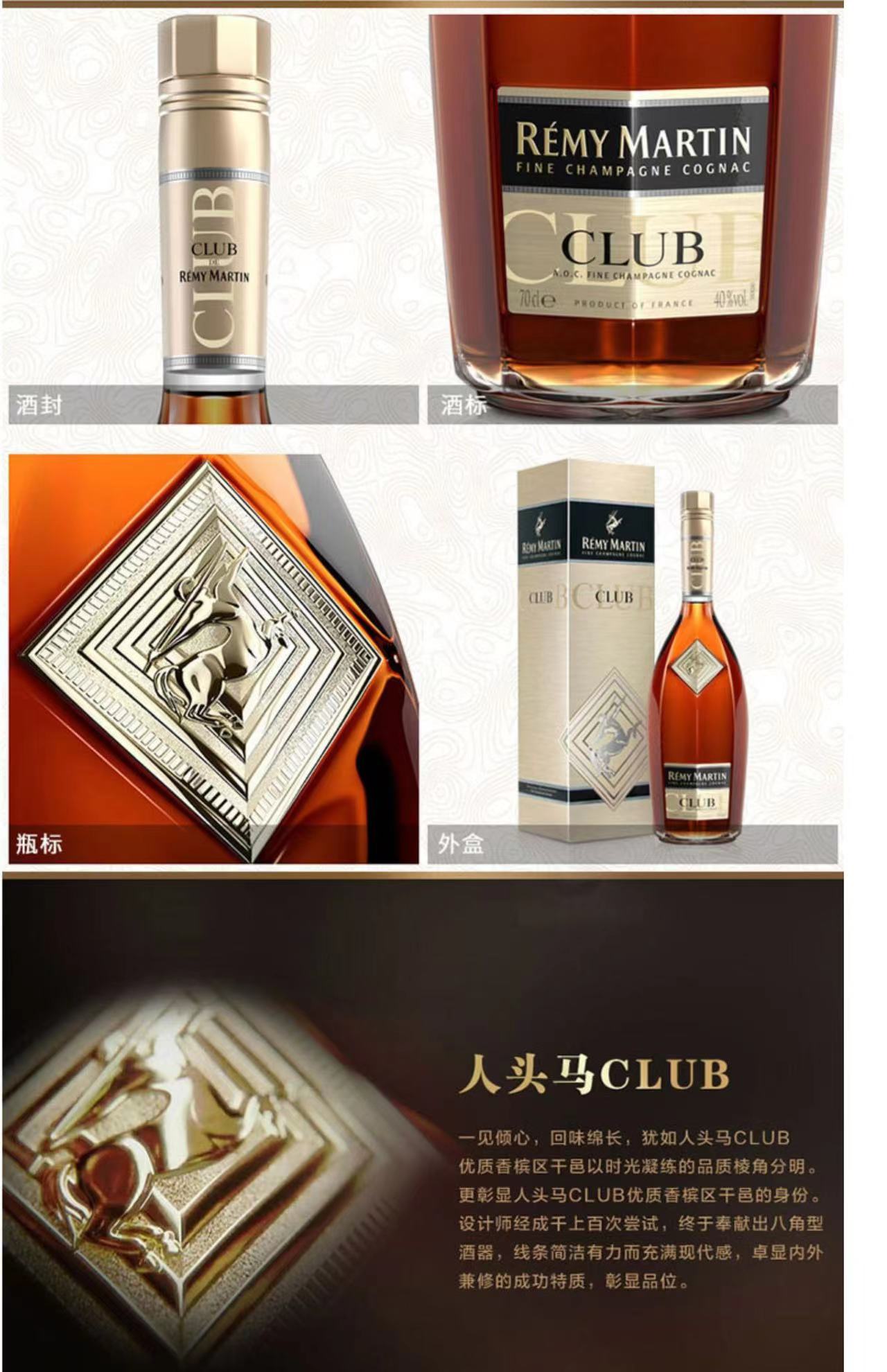 特级人头马·club 优质香槟区干邑白兰地 法国进口人头马 40度 350ml/700ml/1000ml 送礼 宴请 优质洋酒