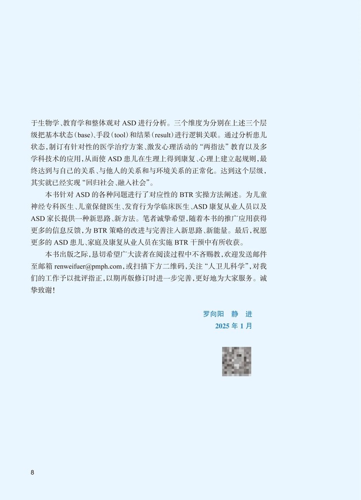 ★ 全书共七章,34万字,融合29个精美BTR策略干预治疗有效案例指导视频,16开,精美印装,内容既包含ASD概论、病因学、发病机制、症状学、诊断等基础内容,又包括两指法教育基础实验研究与应用、ASD BTR策略原理和实操,以及颇具特色的ASD物理治疗、音乐疗法、中医治疗的阐述,切实指导ASD的从业人员实践应用。