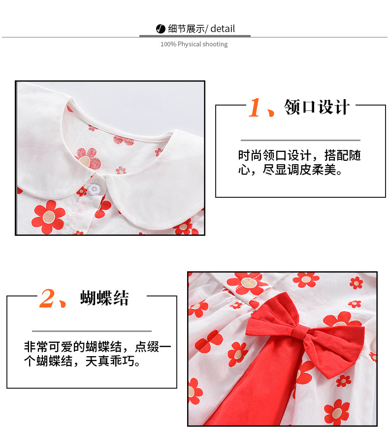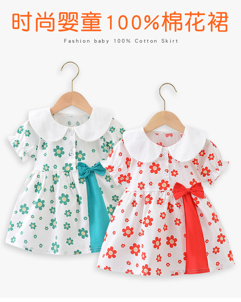 【婴童时尚长尾蝶连衣裙】女童连衣裙夏季短袖纯棉薄款宝宝洋气翻领半身裙子2023新款童裙