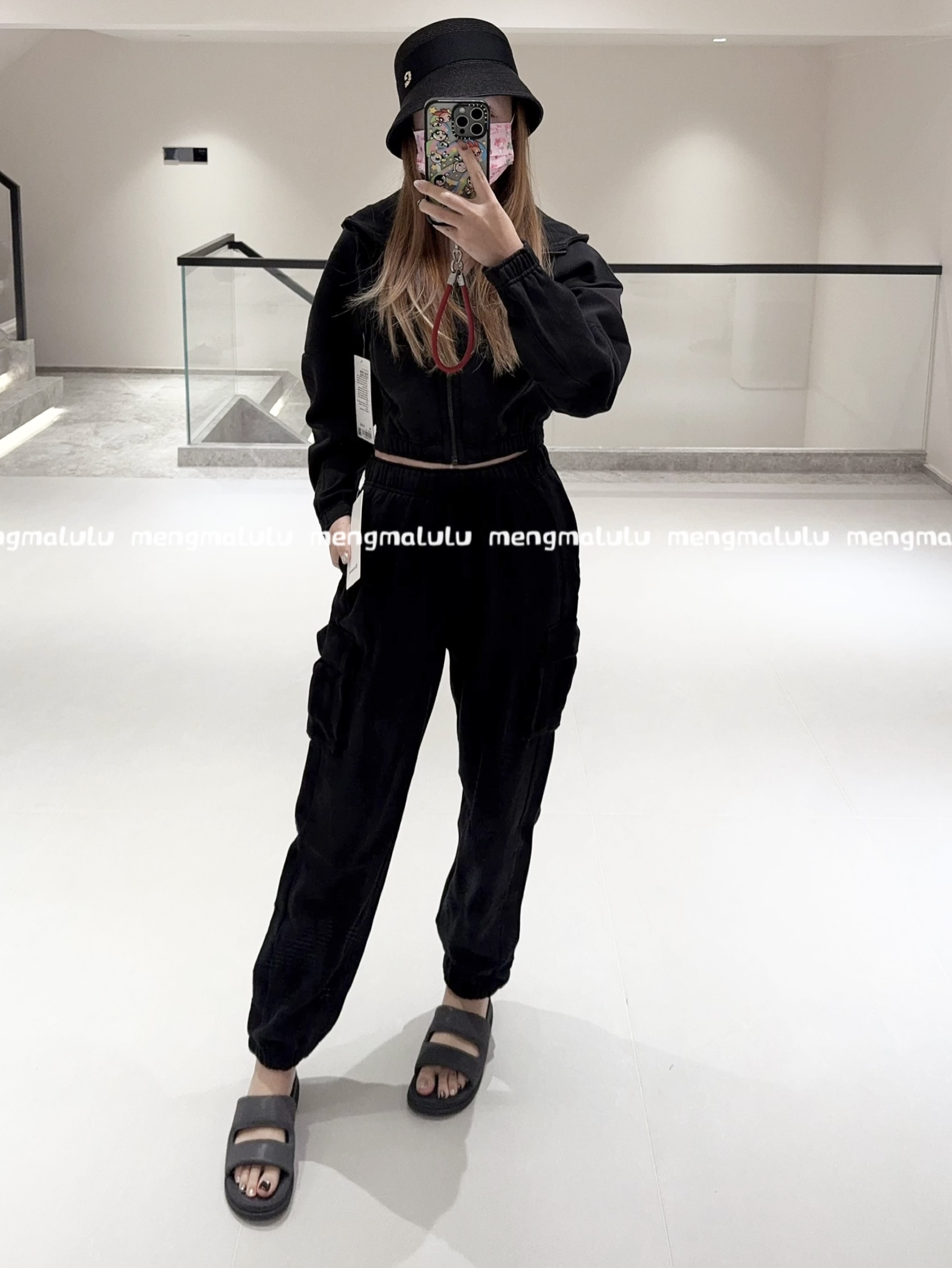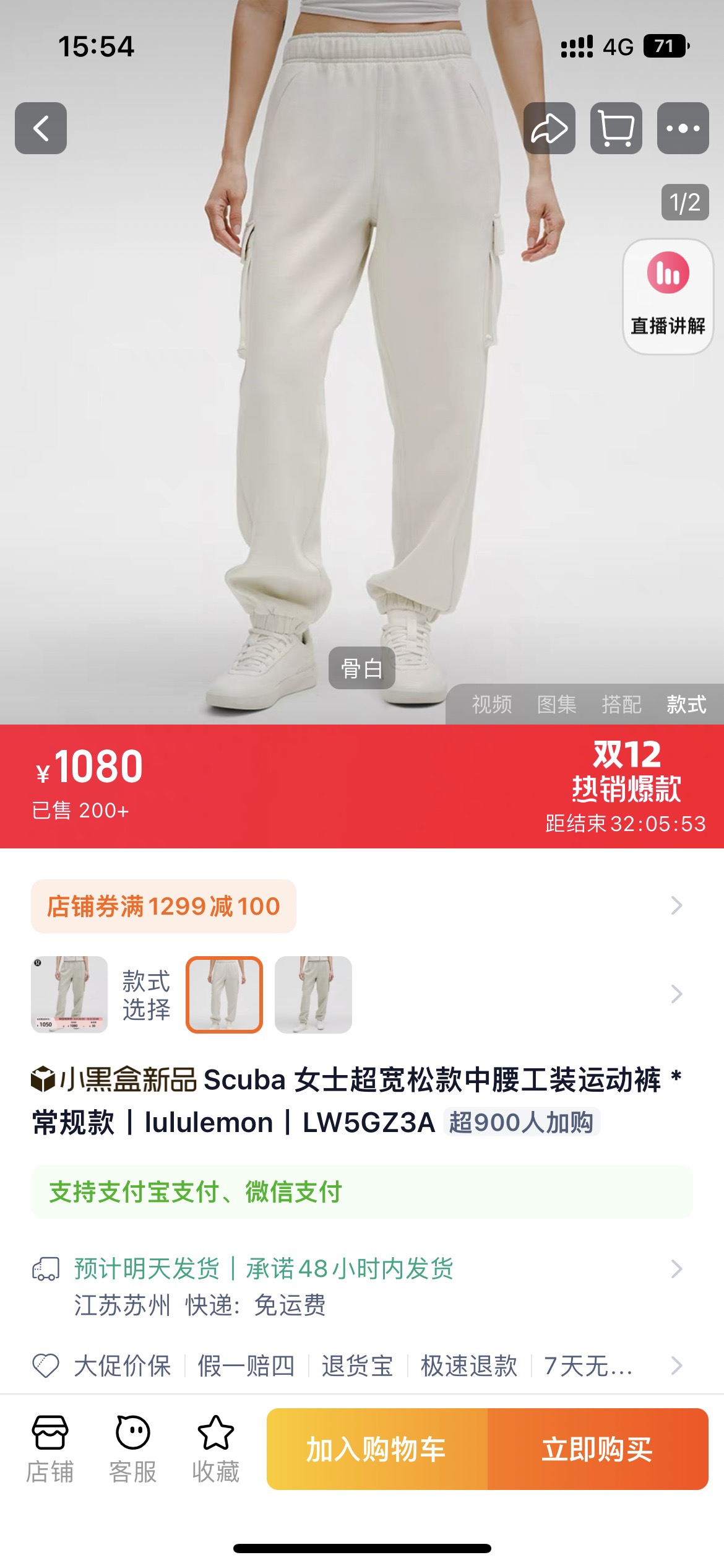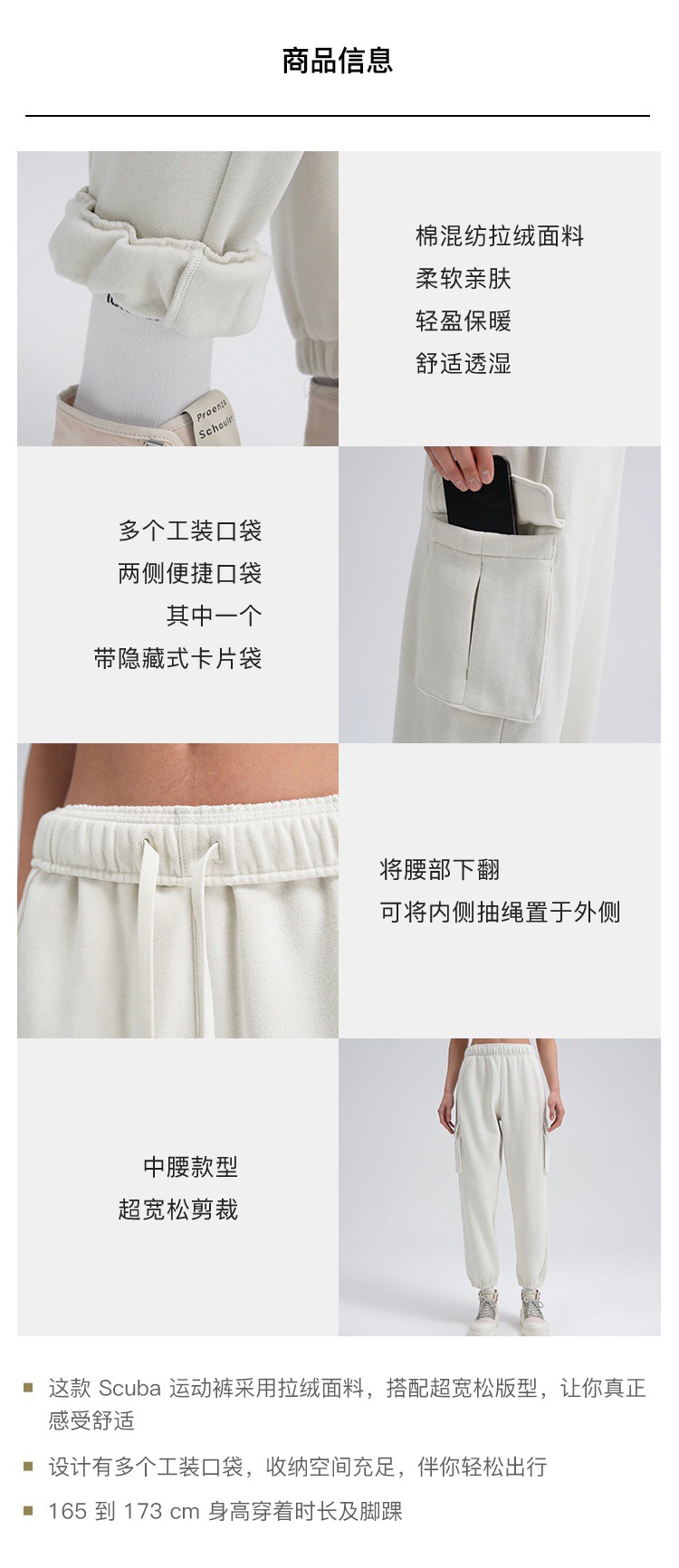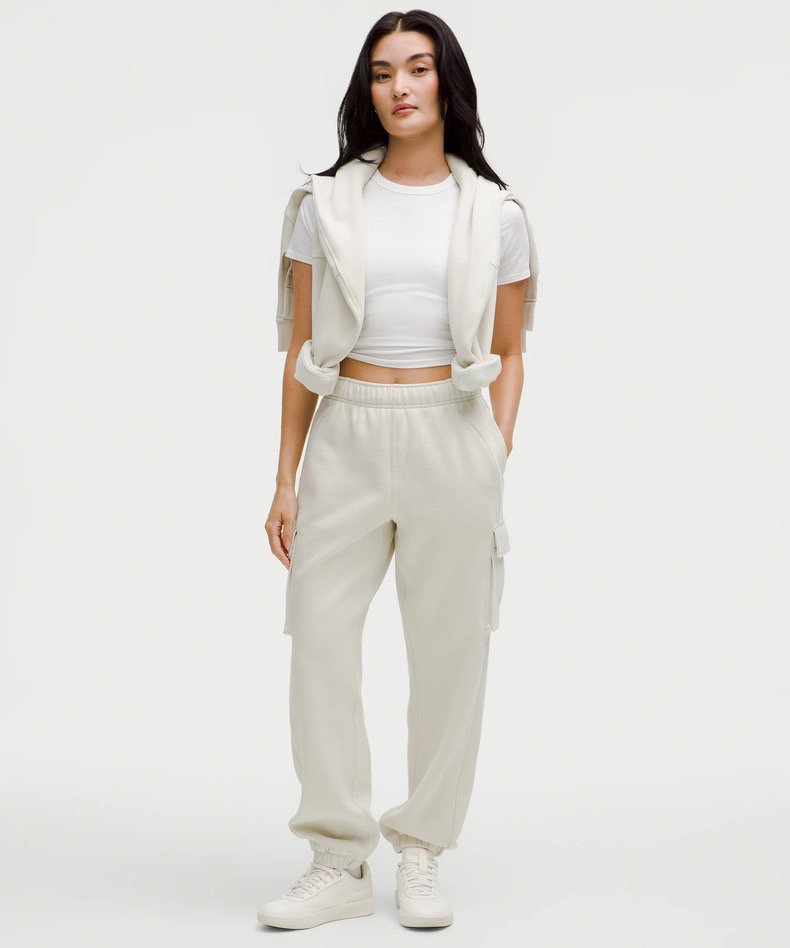 .Lulu Scuba 女士棉混纺拉绒中腰口袋工装运动裤! 工装卫裤