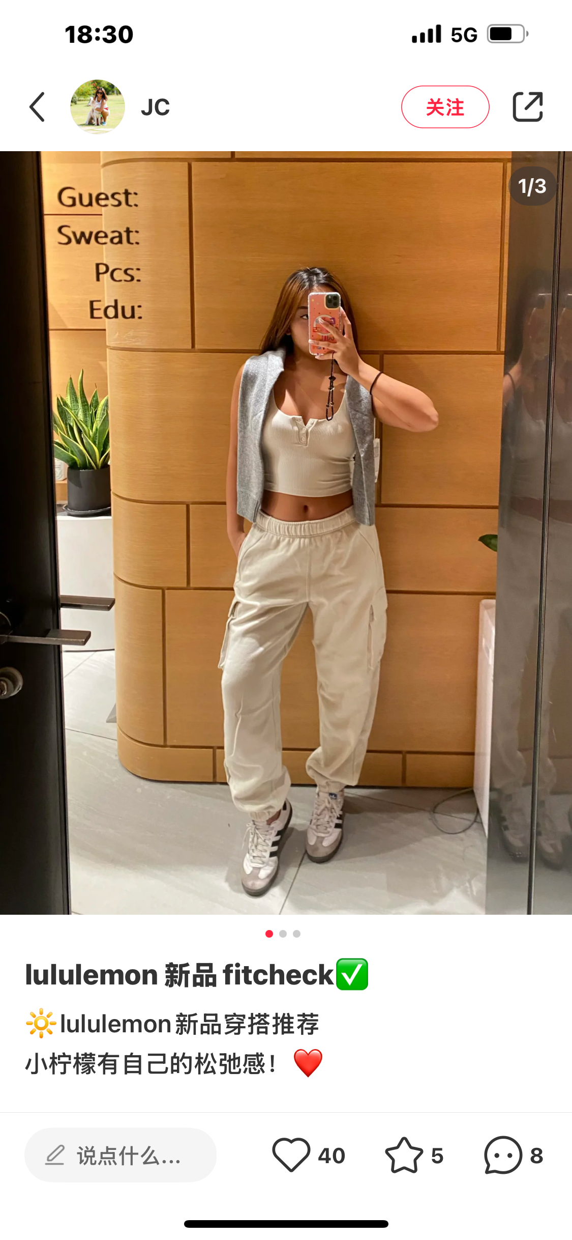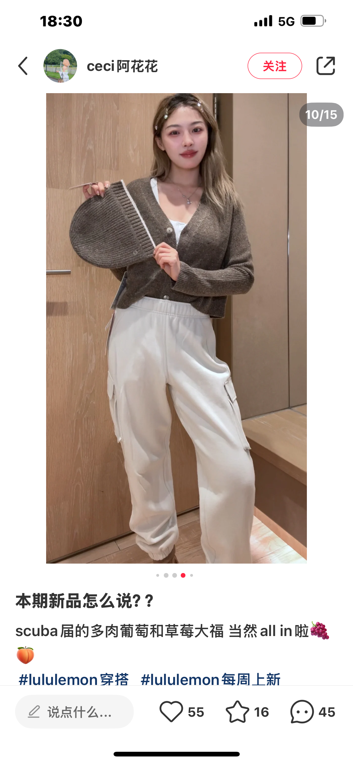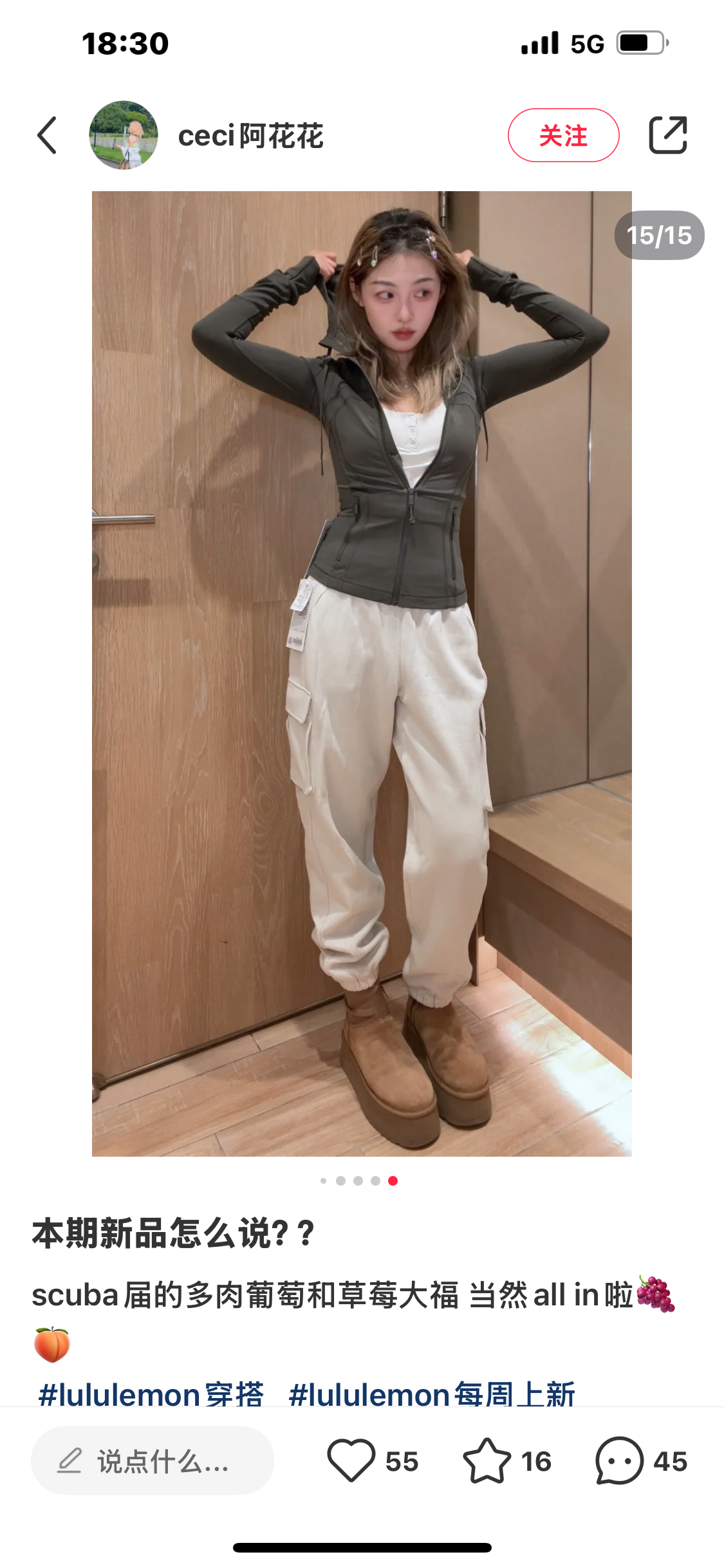 .Lulu Scuba 女士棉混纺拉绒中腰口袋工装运动裤! 工装卫裤