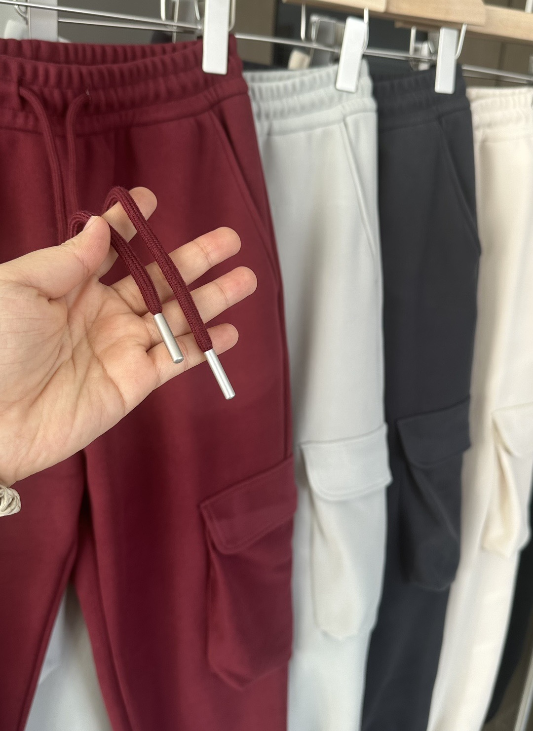 Lulu Scuba 女士棉混纺拉绒中腰口袋工装运动裤!今年最新款版型好惊艳 不啰嗦 都跟上!超超超级厚实的一条❗️加厚绒上身显瘦10斤不止,版型是非常的好,今天你一定要收!后裤身有一个精致的logo刺绣 采用日本田岛机器制成,细腻无棱角,得极高工艺才能满足心对品质的追求 线迹缜密扎实 图案饱满圆润 立体感十足!