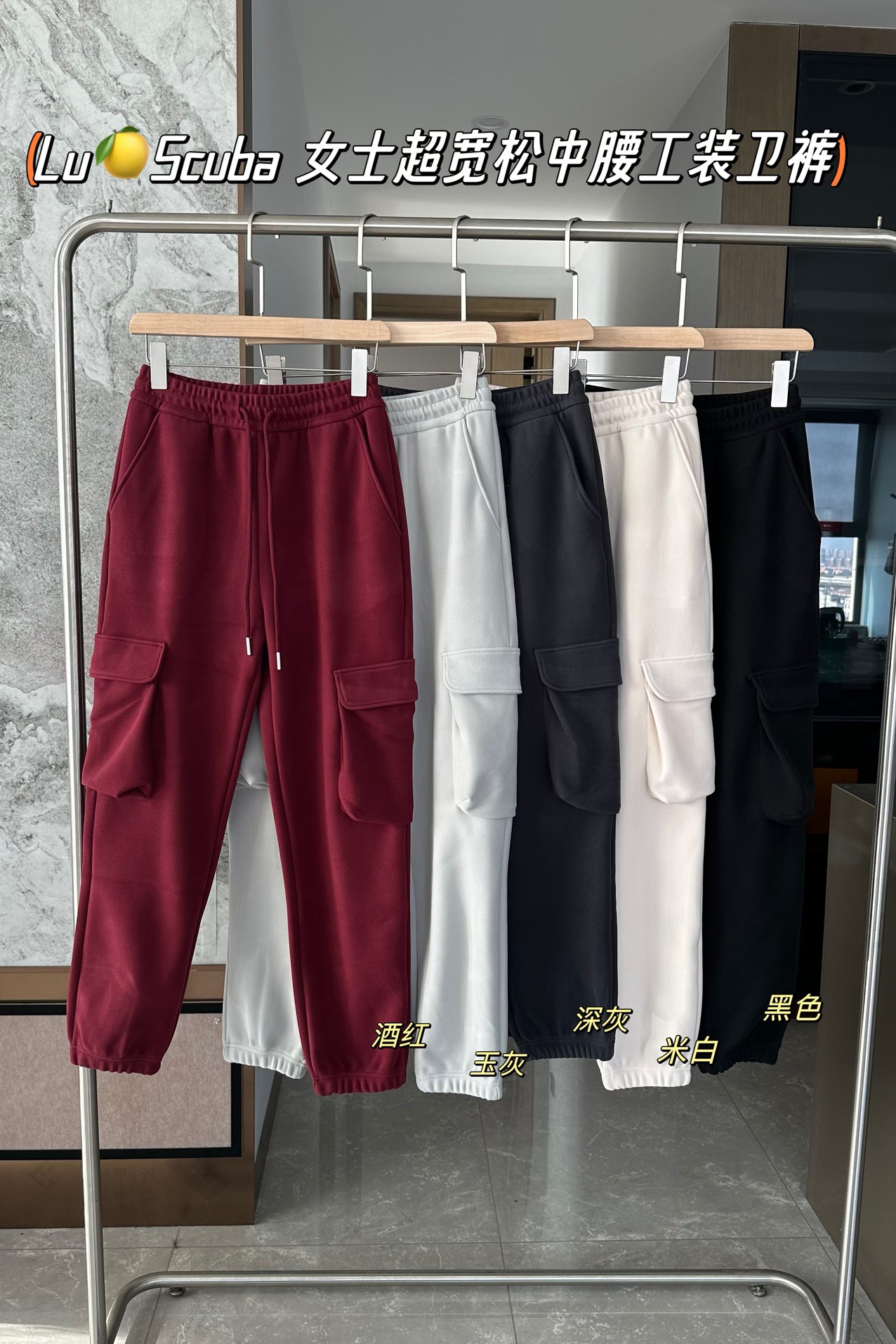 Lulu Scuba 女士超宽松中腰口袋工装卫裤