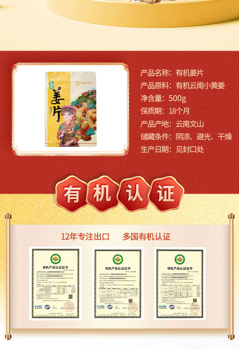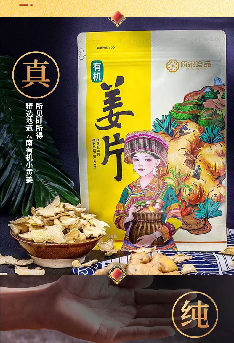 云南有机姜片小黄姜 驱寒泡茶干姜片 500g/袋