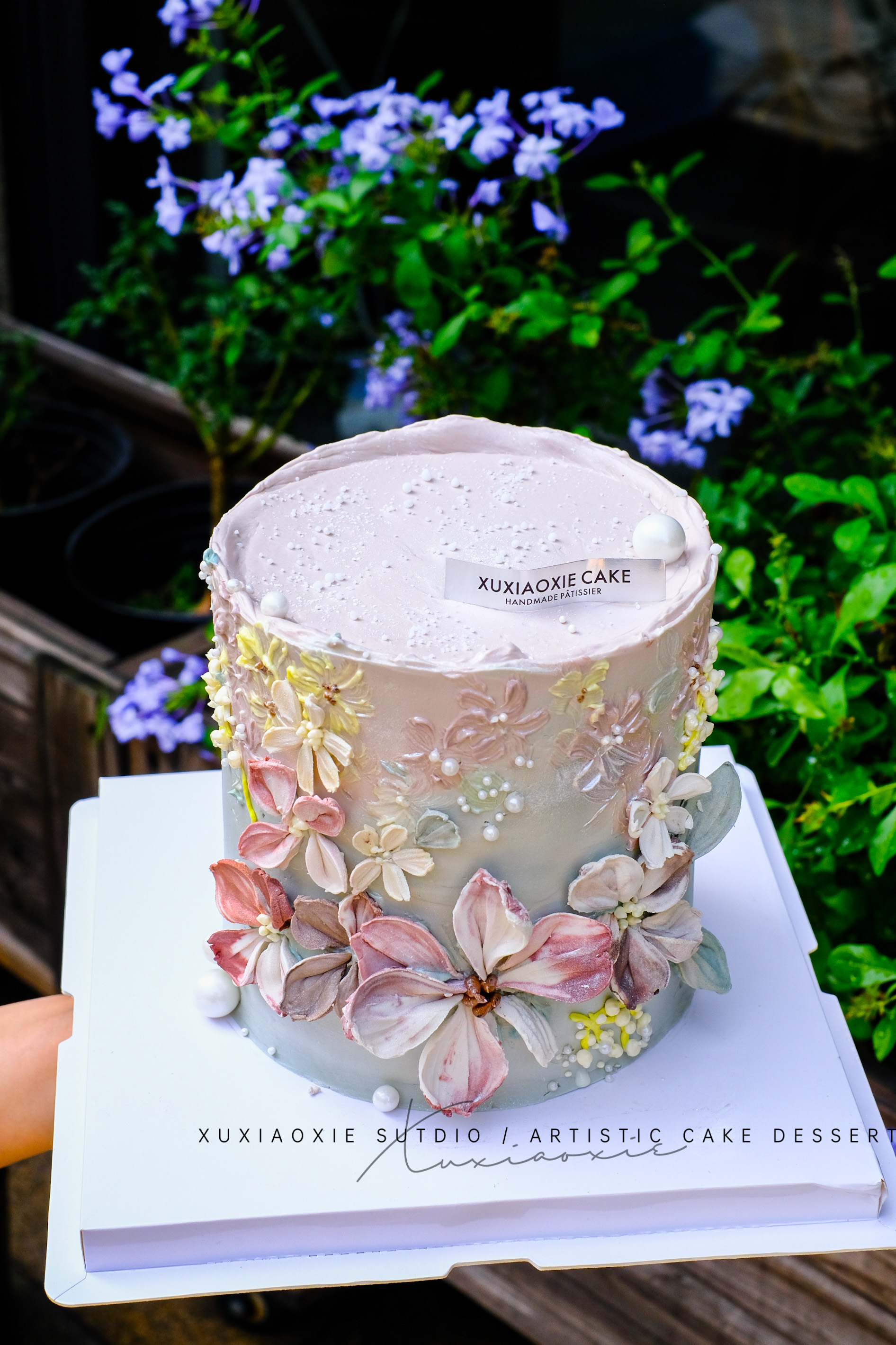 「花蔓」小清新风豆沙刮刀花+奶油霜手绘蛋糕~艺术作品,需要提前2天预定。