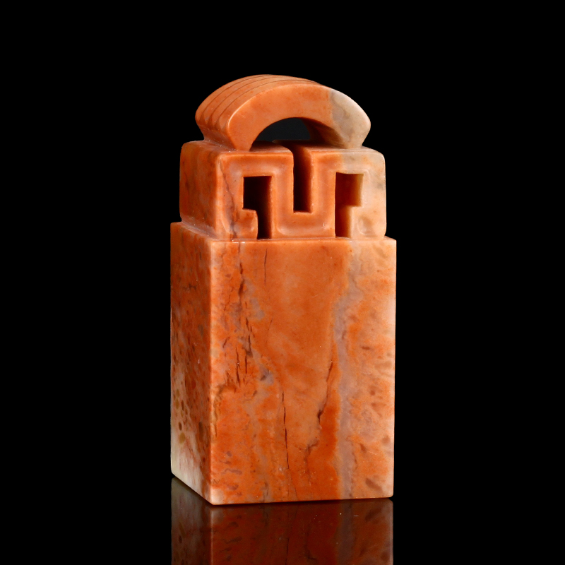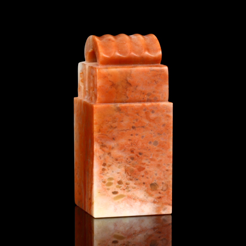 孤品016732-老挝石博古钮扁章-2.9*2.9*6.4cm